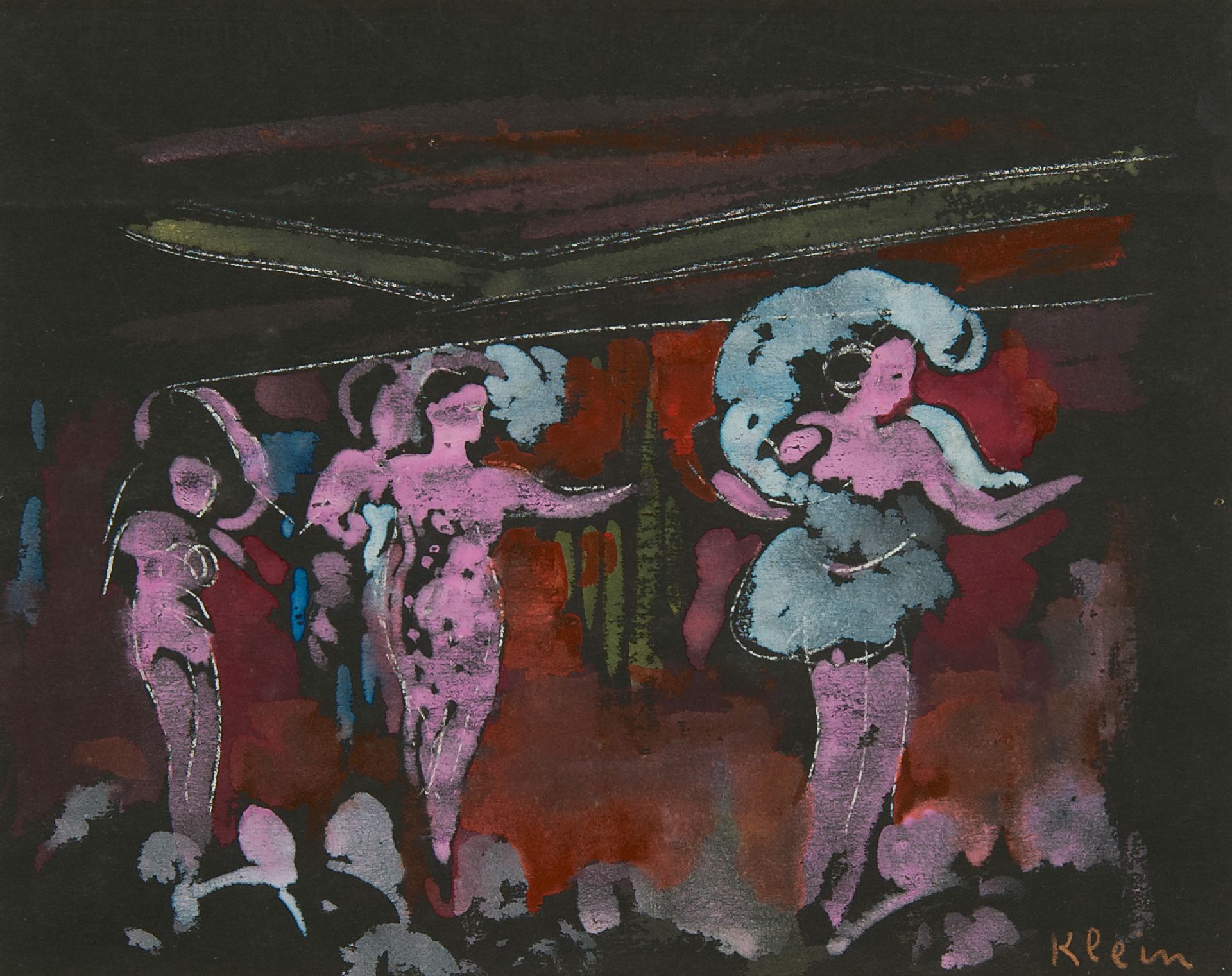Frits Klein kunstwerk • aquarel • tekening • te koop Showdanseressen