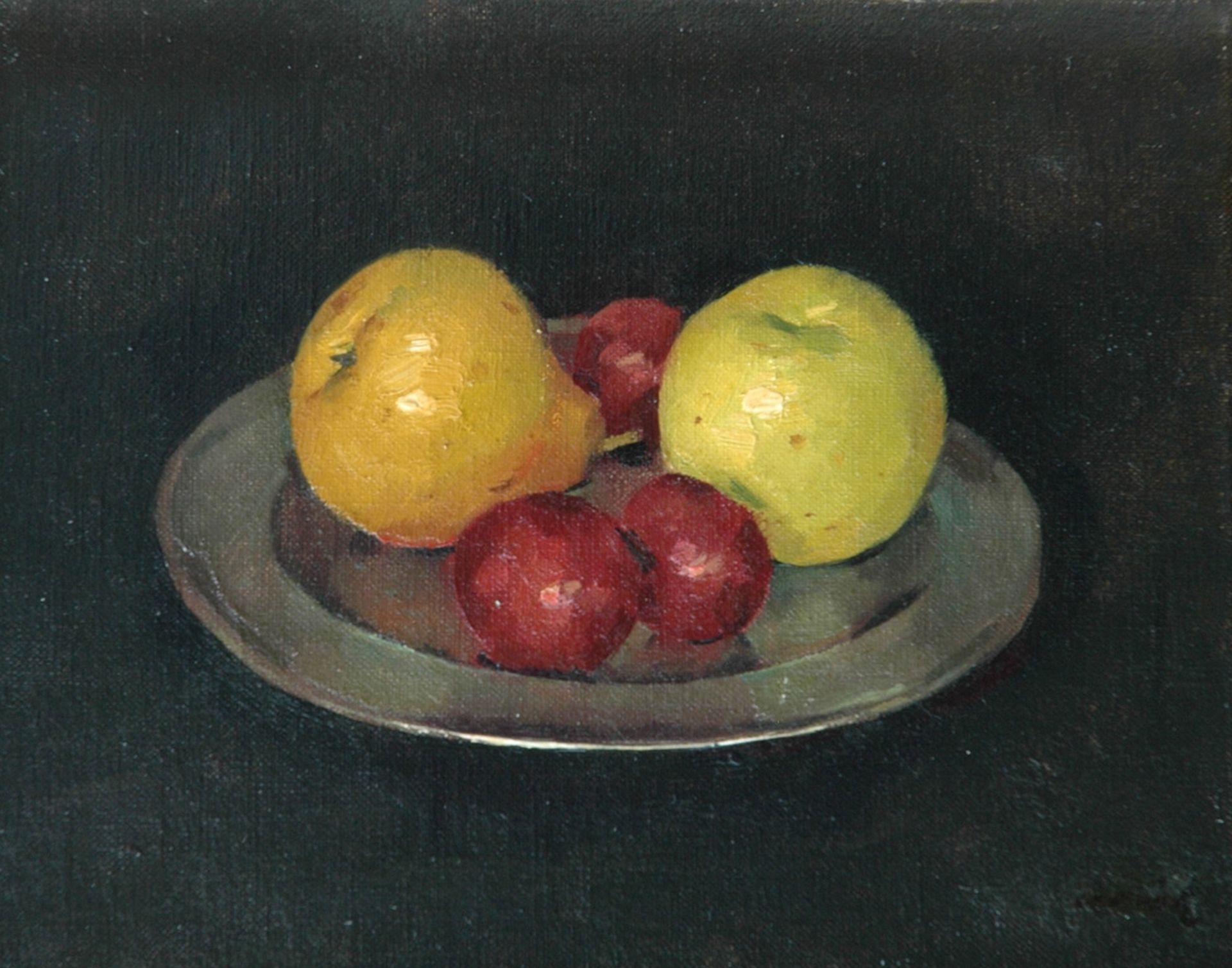 Frits Verdonk kunstwerk • schilderij • voorheen te koop Fruit op tinnen schaal