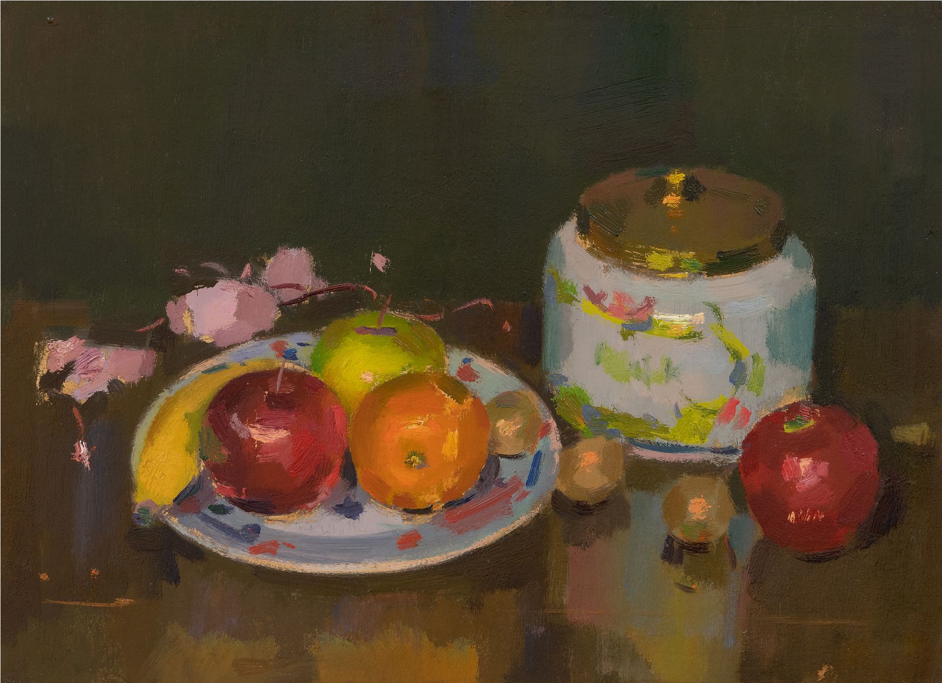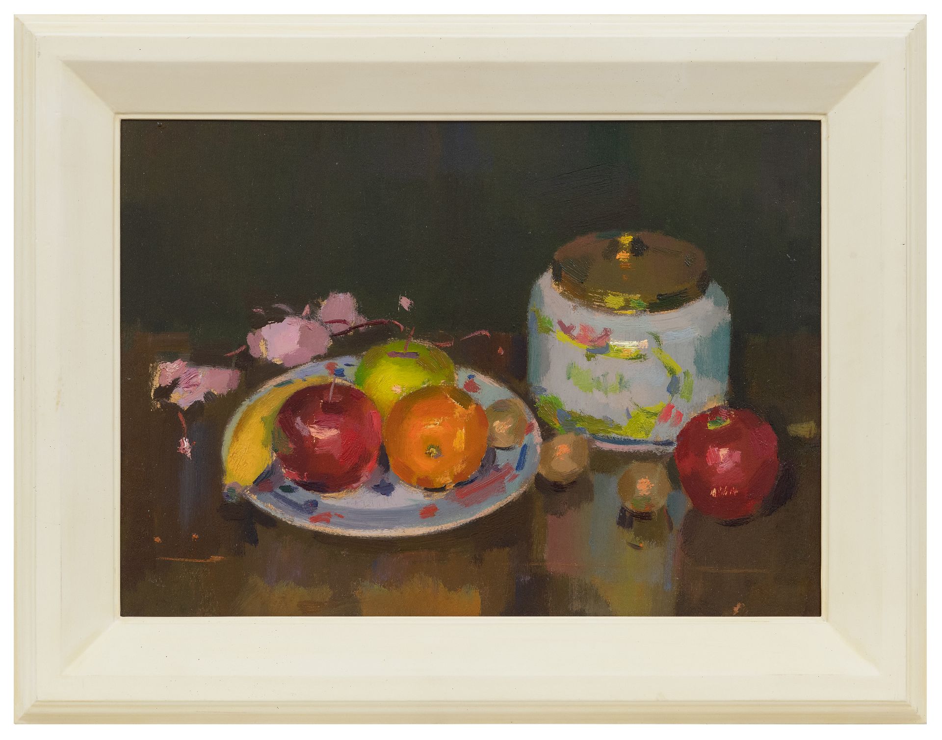 Frits Verdonk kunstwerk • schilderij • te koop Stilleven met tabakspot en fruit