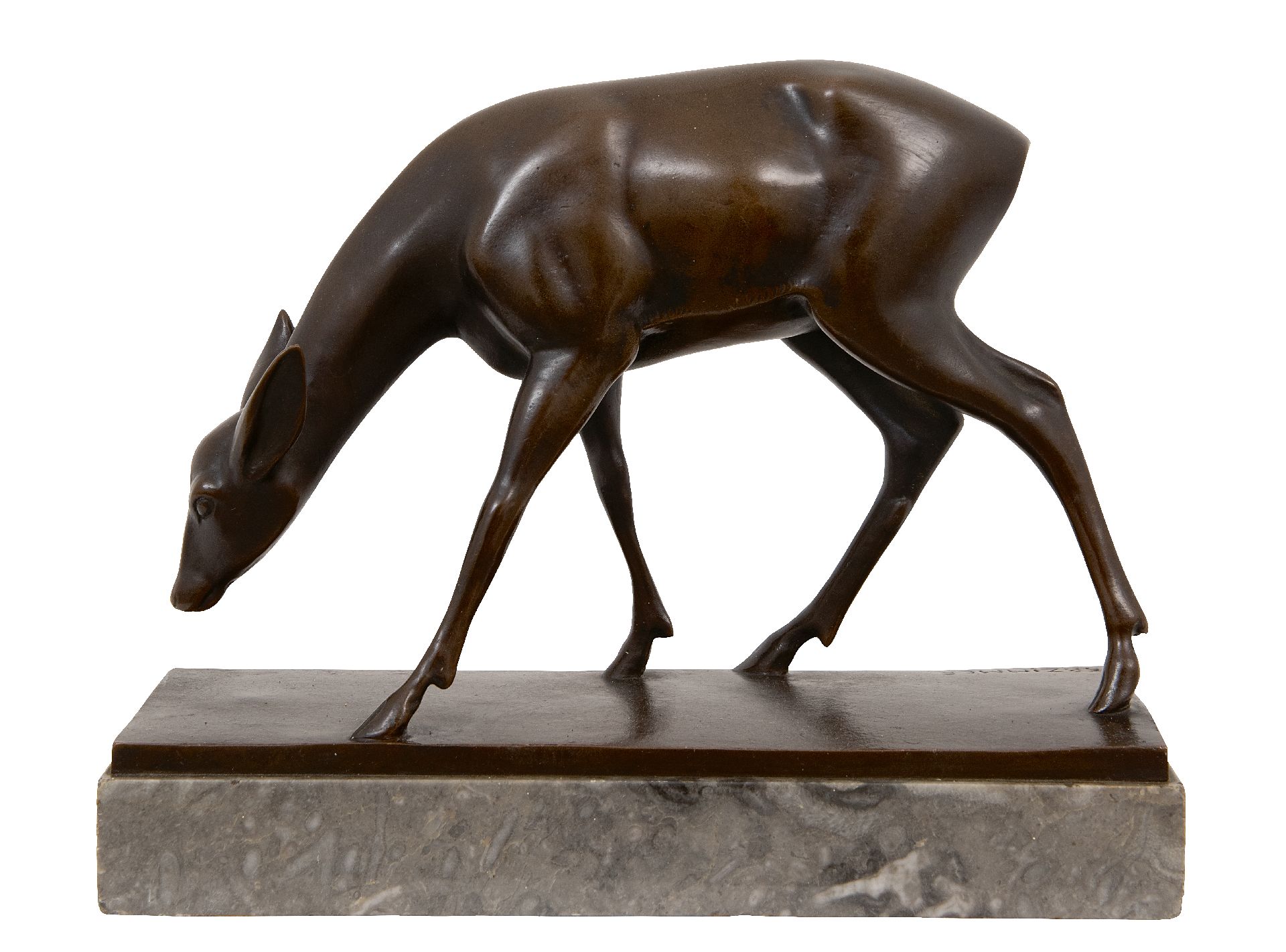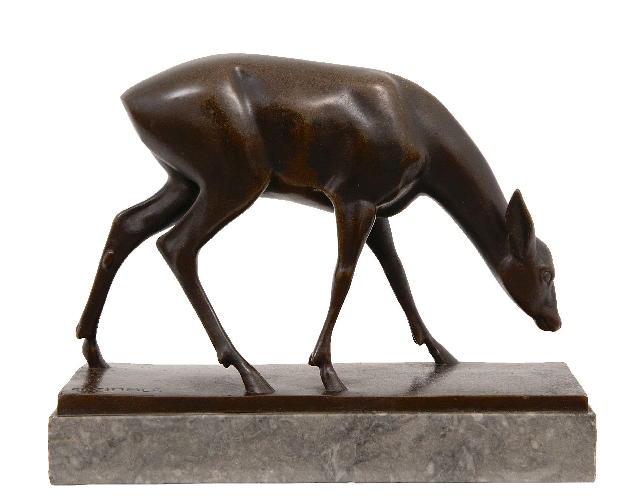 Fritz Paul Zimmer kunstwerk • beeld • sculptuur • voorheen te koop Grazende ree