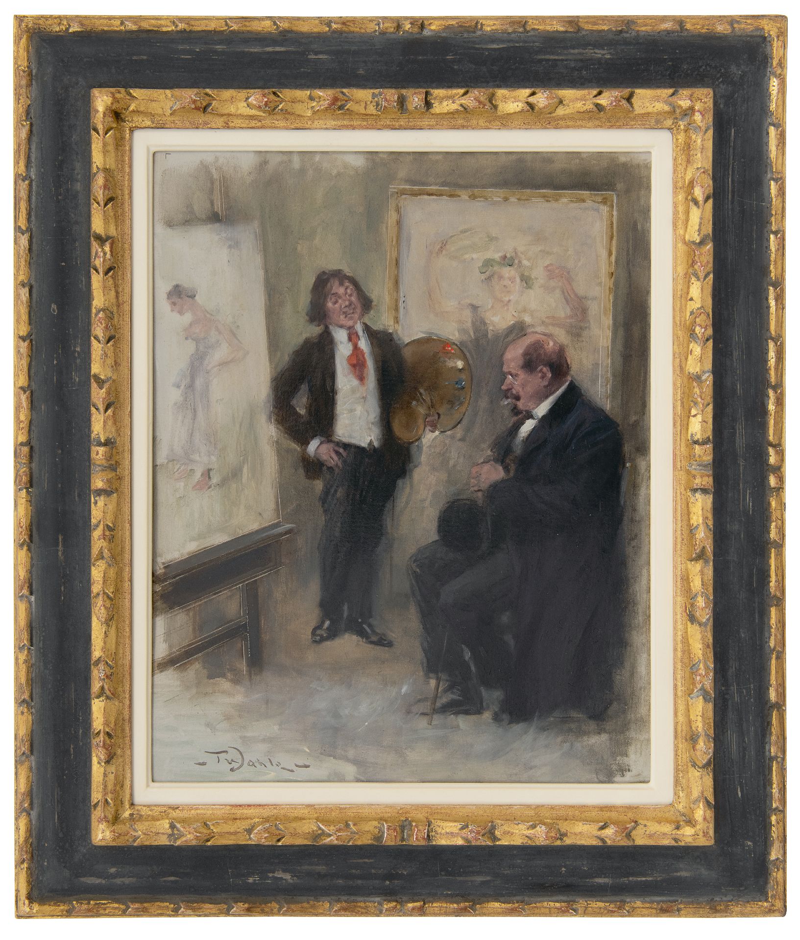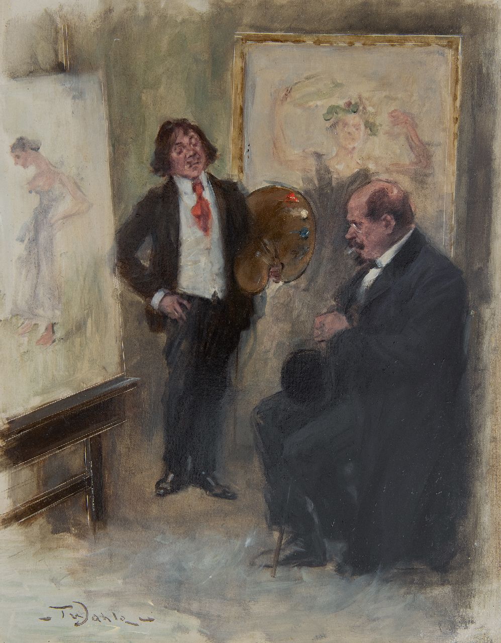 De Duitse impressionist Friedrich Wahle werd opgeleid aan de academie van München en vervolmaakte zijn studie in Parijs. Na zijn terugkeer in Duitsland werd hij een zeer geliefd schilder van verhalende genrevoorstellingen. In het verlengde hiervan lagen zijn werkzaamheden als illustrator, o.a. voor het satirische, maatschappijkritische tijdschrift ‘Fliegende Blätter’. In verband met de toenmalige reproductietechniek leverde hij hiervoor ontwerpen in grijstinten. Dit leidde bij Wahle tot een geheel nieuwe stijl waarin hij zich beperkte tot enkele kleuren. Het is bekend dat de schilder tussen 1900 en 1910 Volendam bezocht en daar ook schilderde.
