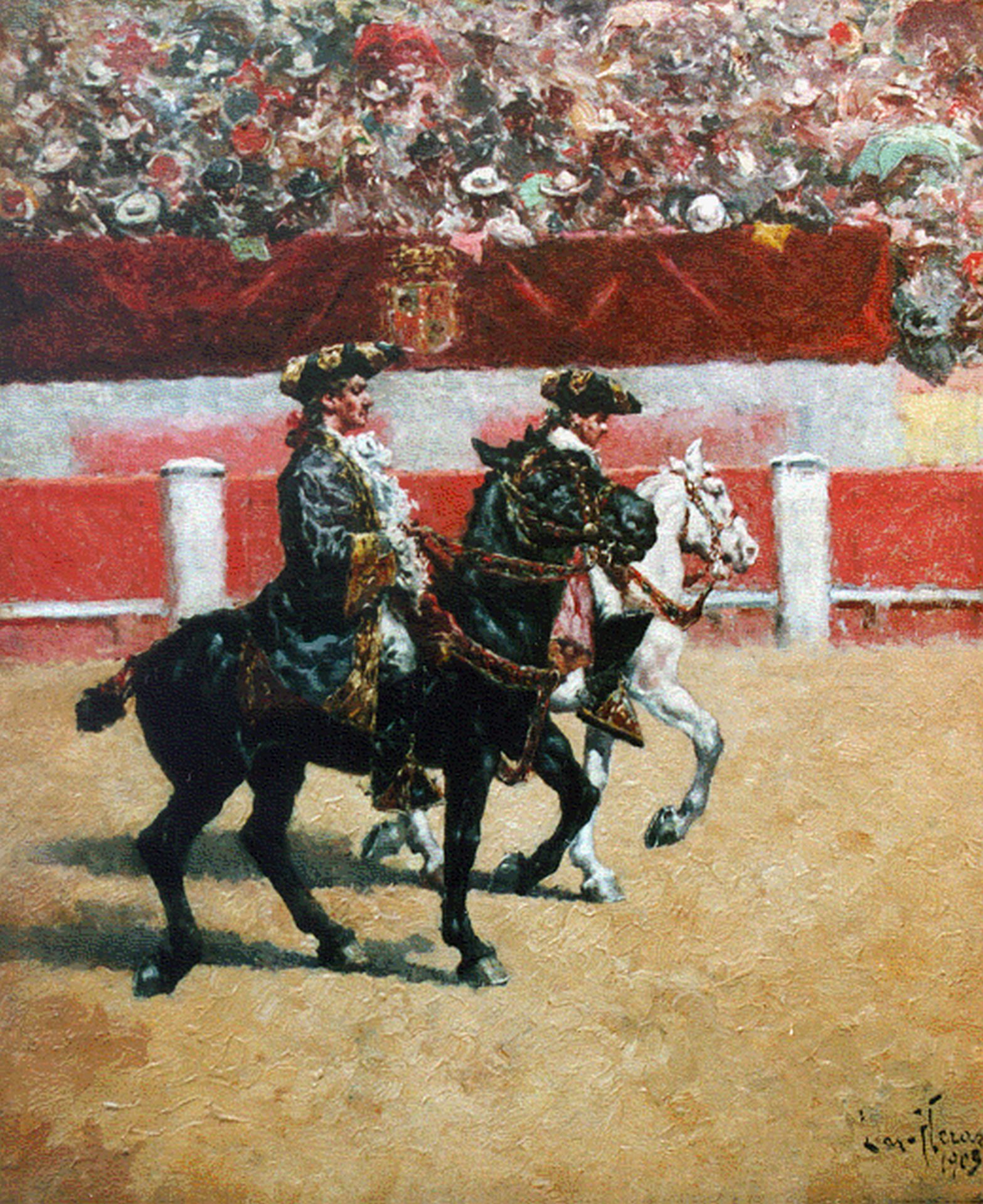 G. de las Heras kunstwerk • schilderij • voorheen te koop De 'Alguaciles' bij een stierengevecht