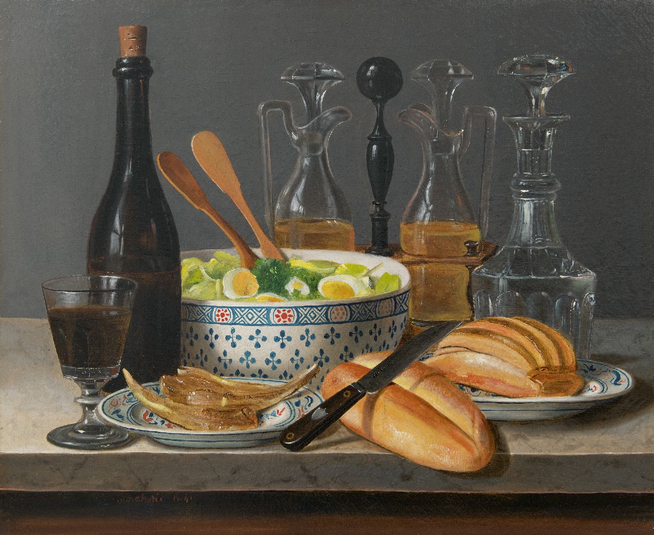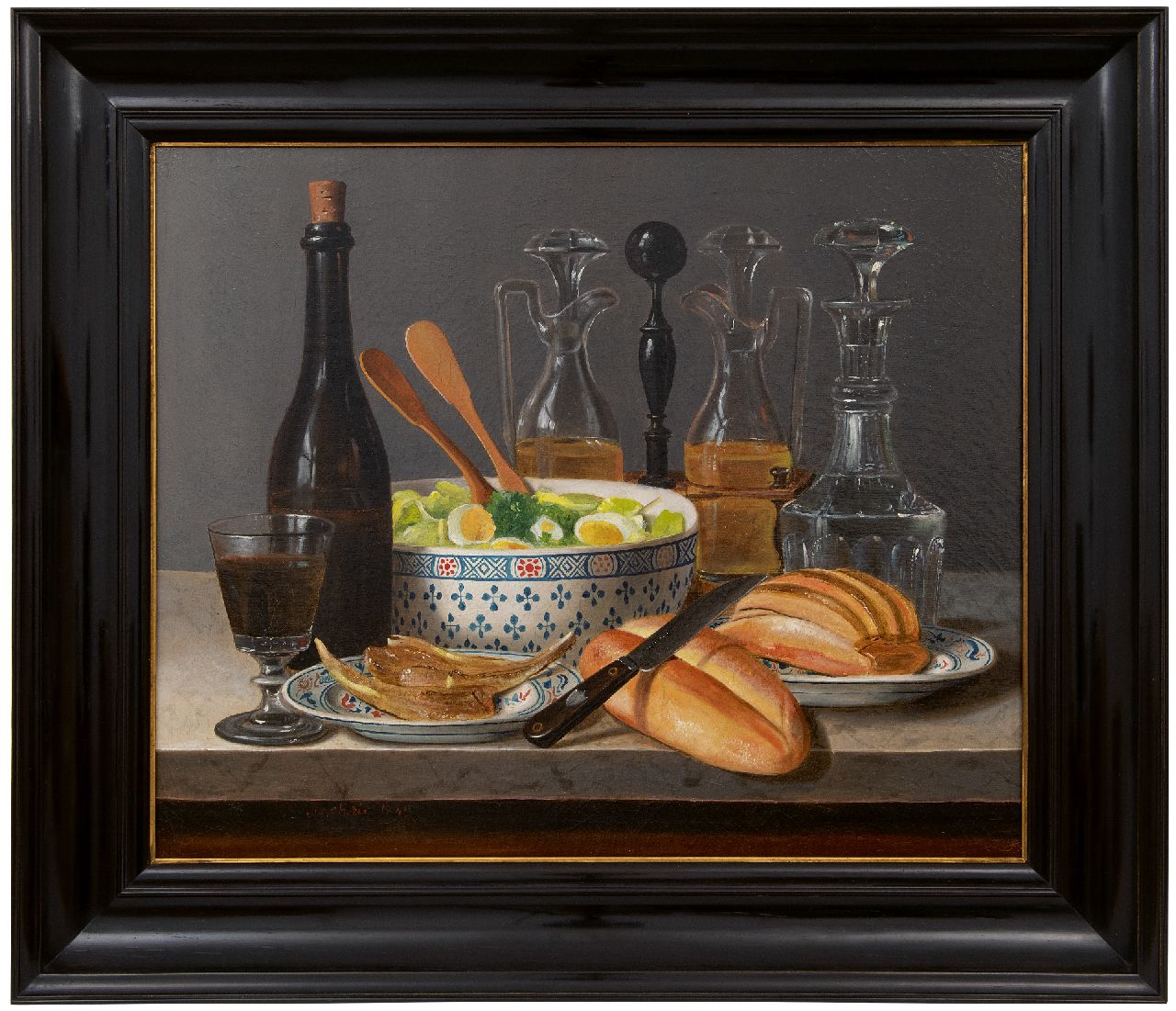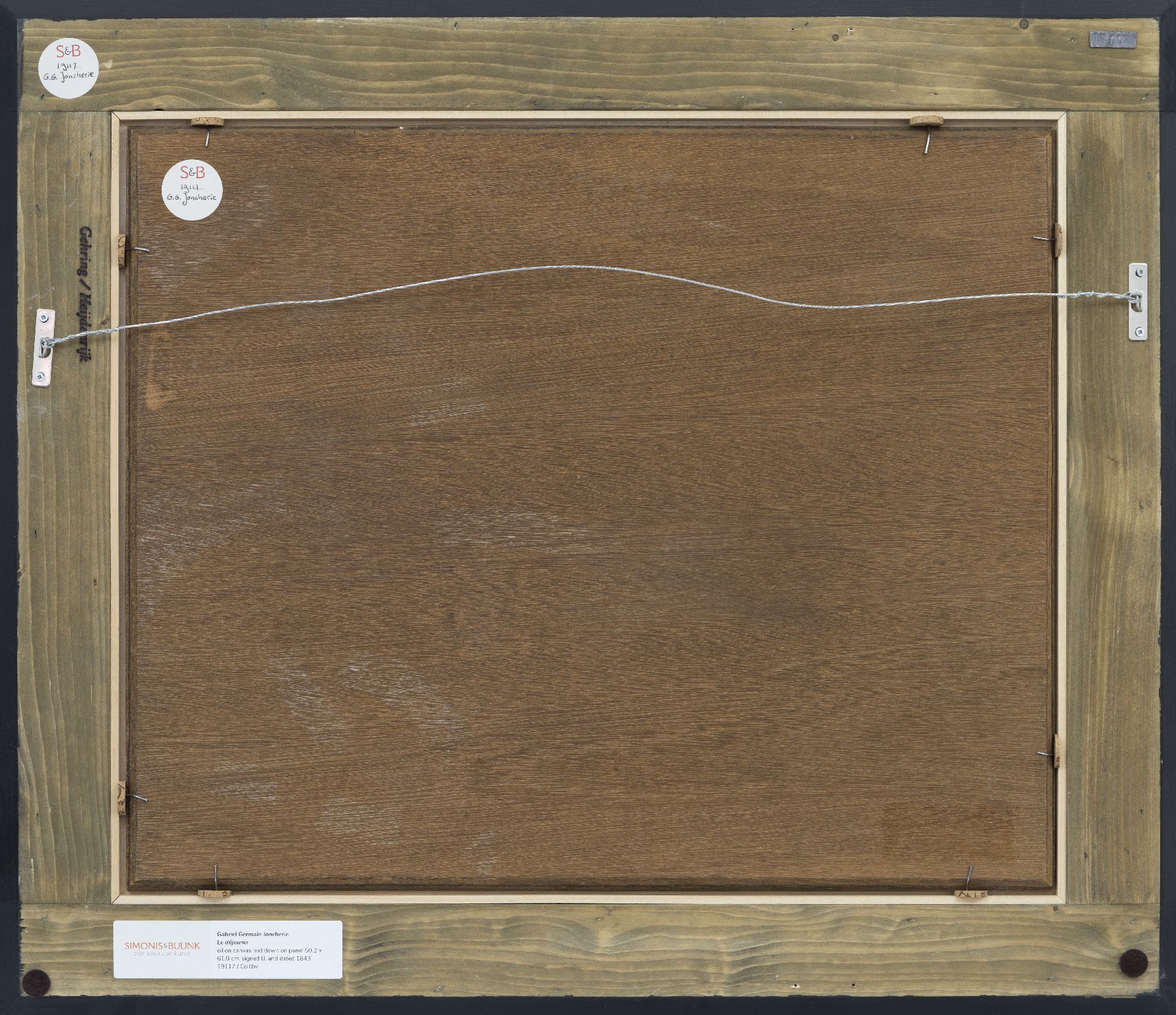olieverf op doek op paneel 50,2 x 61,0 cm, gesigneerd linksonder en gedateerd 1843
