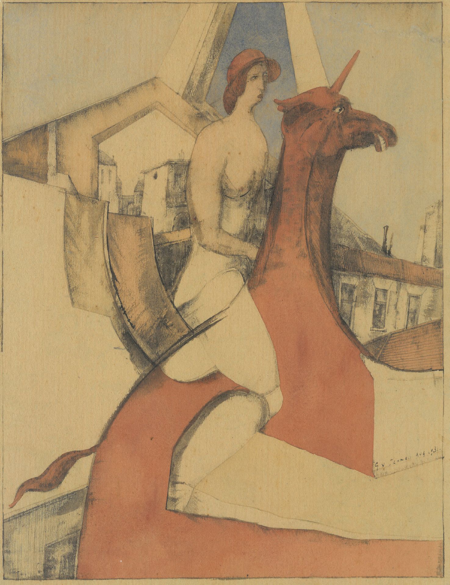 Gabriel van Schnell kunstwerk • schilderij • te koop Vrouwelijk naakt op eenhoorn