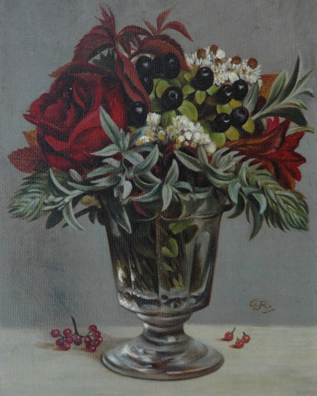 Gé Röling kunstwerk • schilderij • voorheen te koop Bloemstilleven in glazen vaas