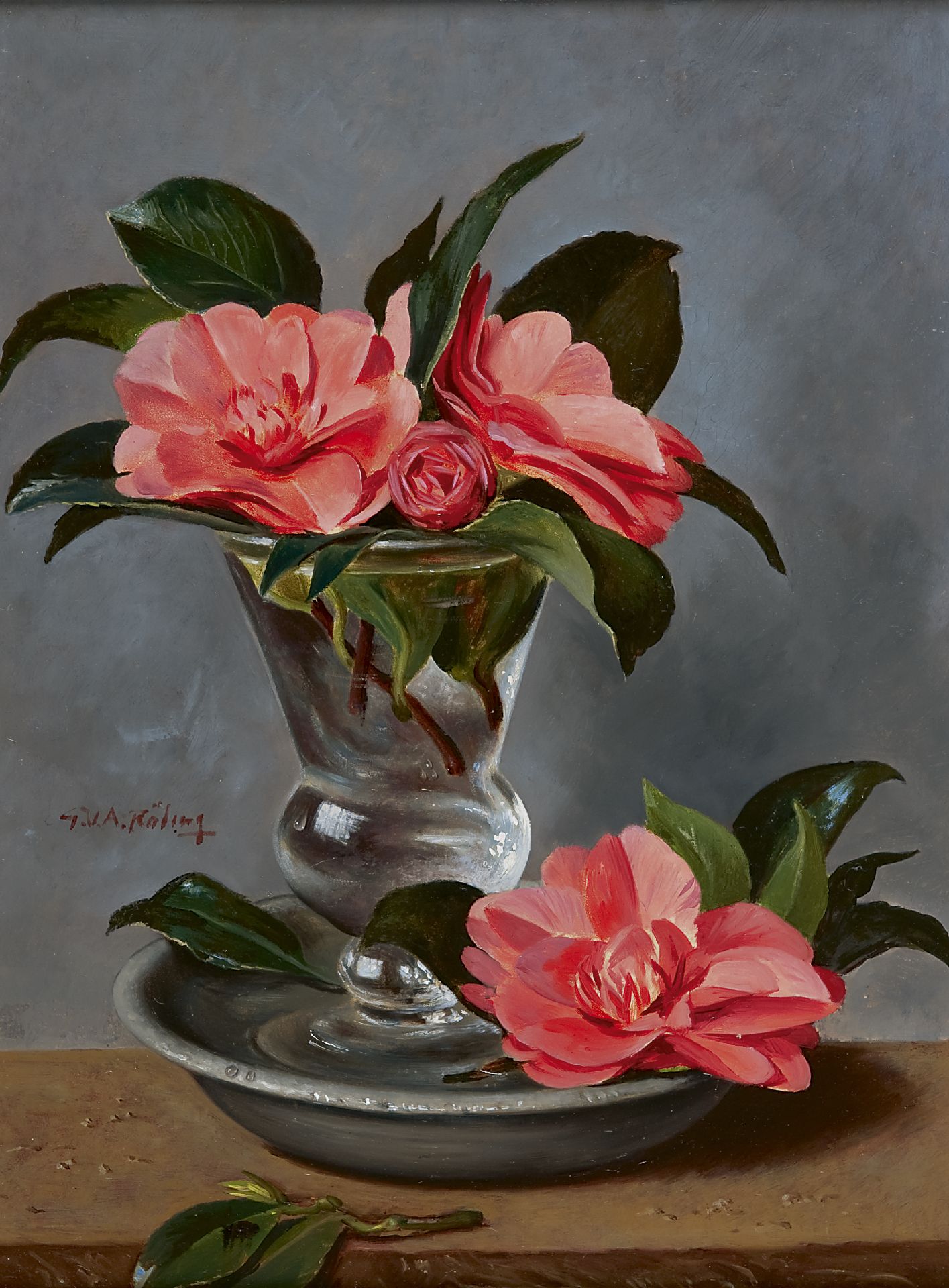 Gé Röling kunstwerk • schilderij • voorheen te koop Stilleven met camelia's