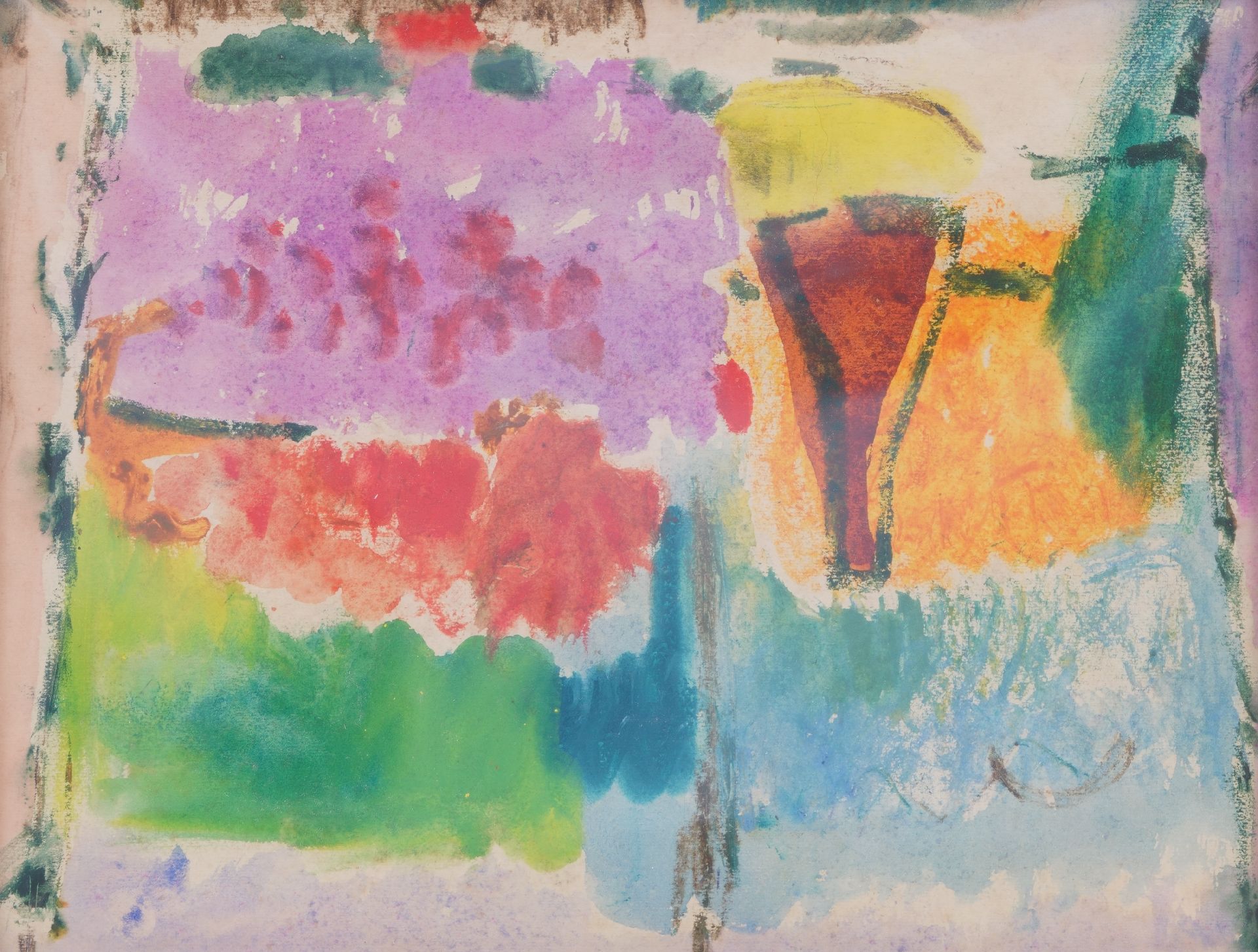 aquarel en gouache op papier 23,8 x 31,7 cm, gesigneerd rechtsonder en te dateren ca. 1944