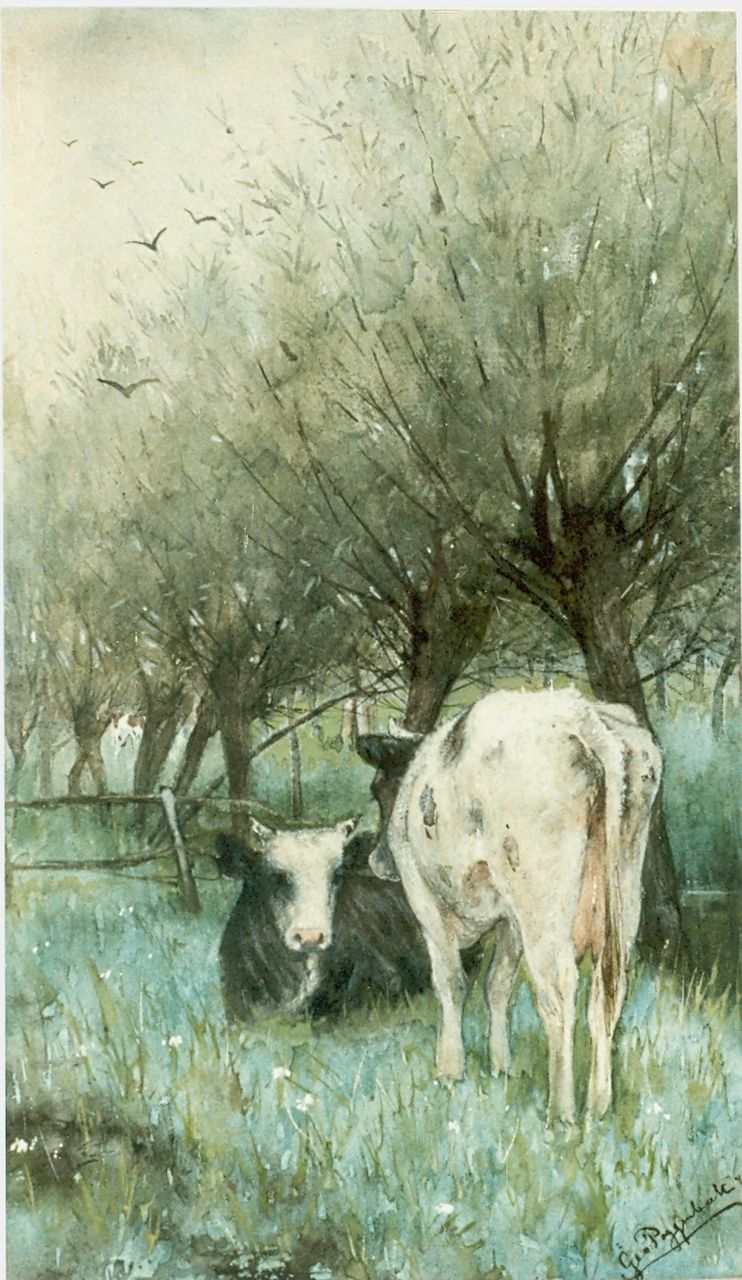Geo Poggenbeek kunstwerk • aquarel • tekening • voorheen te koop Kalfjes bij knotwilg