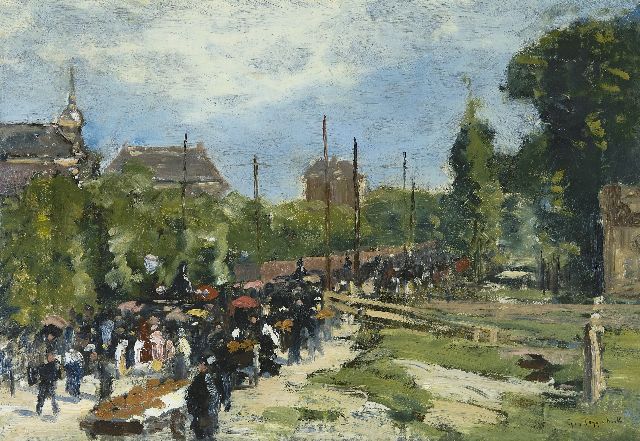 Geo Poggenbeek | Optocht in Amsterdam, olieverf op doek, 33,9 x 48,2 cm, gesigneerd r.o.