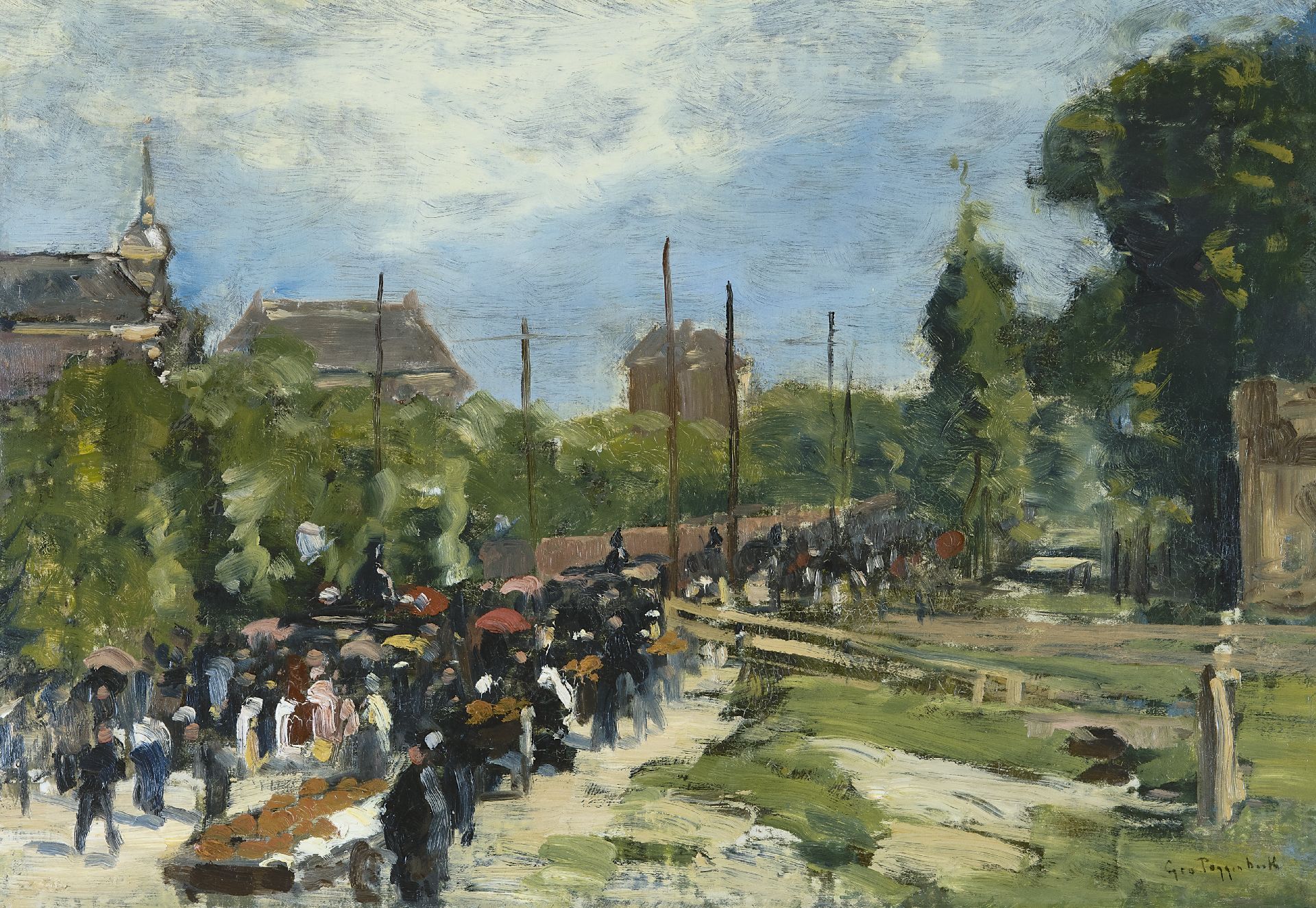 Geo Poggenbeek behoort tot de nabloei van de Haagse School. Hij schilderde en aquarelleerde het Hollands landschap in een dromerige toon die aan Willem Maris en Anton Mauve doet denken. In zijn tijd oogstte Poggenbeek veel succes met zijn sfeervolle verbeeldingen van het Hollandse landschap - vaak intieme plekjes met koeien of eenden aan de slootkant, onder de beschutting van een bosje. In de periode dat hij samen met zijn schildersvriend Nicolaas Bastert in Breukelen woonde (1881-1887), schilderde hij veel Vechtgezichten. Hij was leermeester van J.F.C. Scherrewitz.