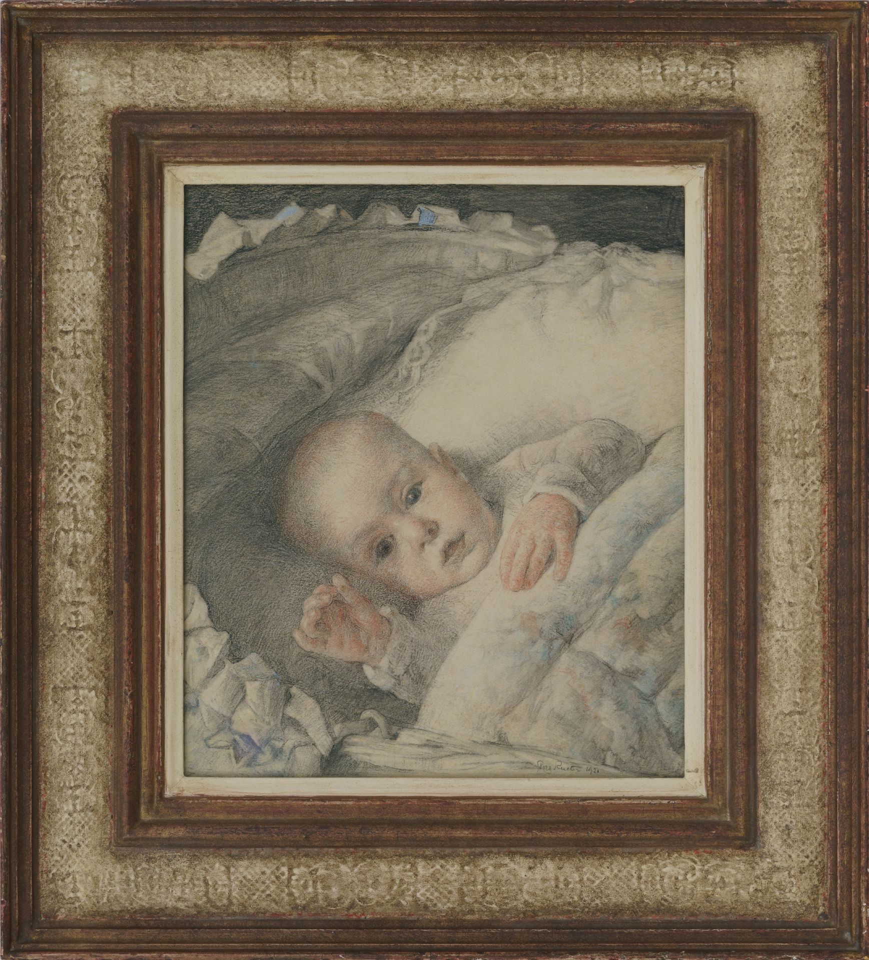 Georg Rueter kunstwerk • aquarel • tekening • te koop Babyportret van Jan Peter Moes