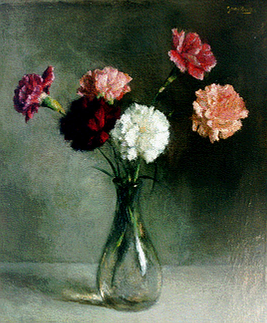Georg Rueter kunstwerk • schilderij • voorheen te koop Anjers in een glazen vaas