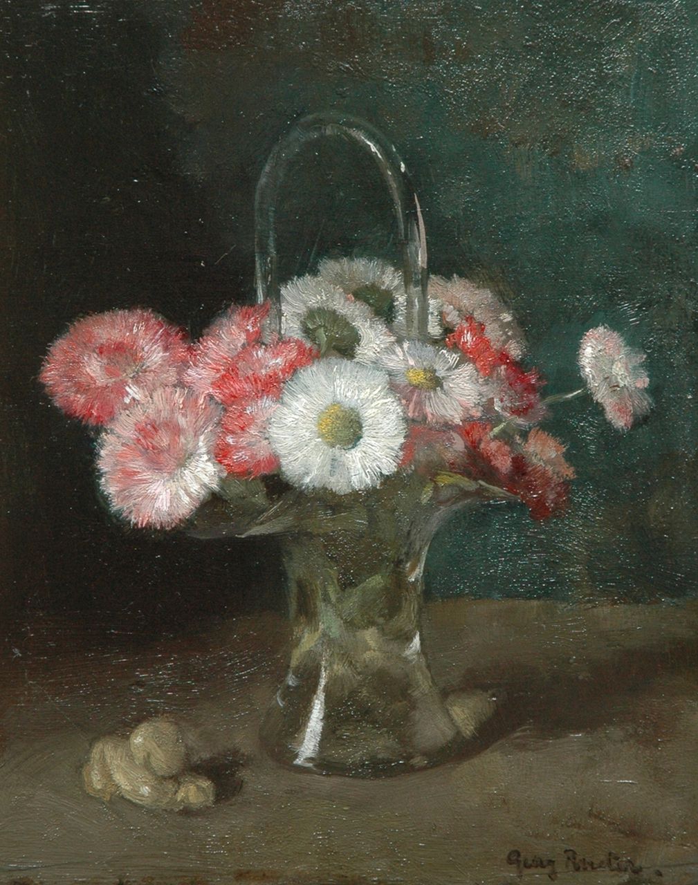 Georg Rueter kunstwerk • schilderij • voorheen te koop Bloemen in glazen vaasje