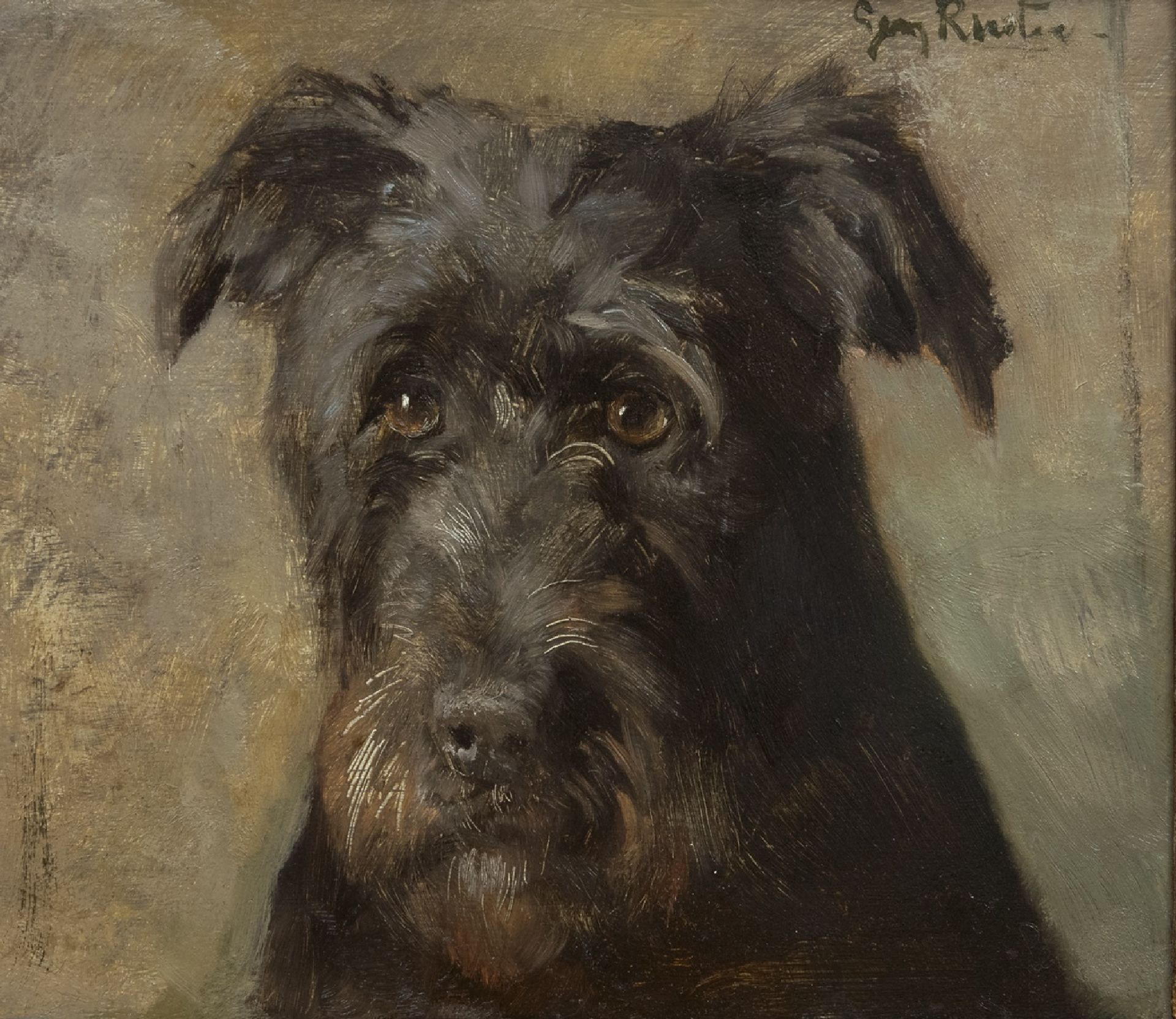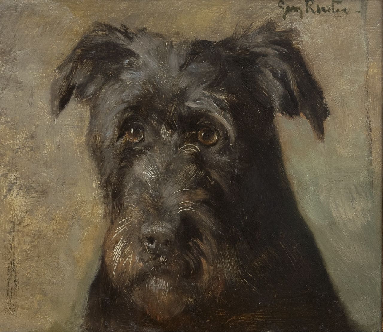 Georg Rueter kunstwerk • schilderij • voorheen te koop Portret van een terriër