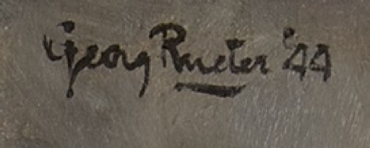 Georg Rueter kreeg zijn opleiding aan de Rijksacademie in Amsterdam, o.a. van August Allebé. Hij muntte uit in het tekenen en schilderen van portretten en bloemstillevens en behoorde aan het begin van deze eeuw tot de toonaangevende schilders in ons land, zoals onder anderen ook Breitner, Gestel, Maks en Sluijters dat waren. Rueter was ook werkzaam als glasschilder, bekend om zijn ramen van de Nieuwe Kerk in Delft en van de Pieterskerk in Leiden. Daarnaast ontwierp hij ex-libris, postzegels, en boekomslagen.