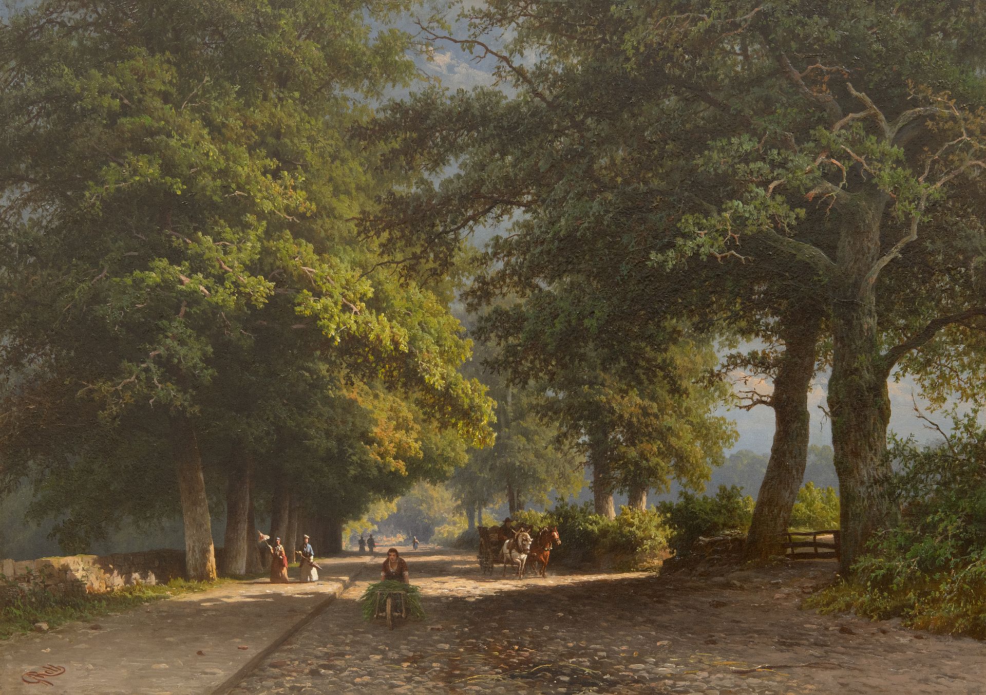 George Andries Roth kunstwerk • schilderij • voorheen te koop Bomenlaan met wandelaars