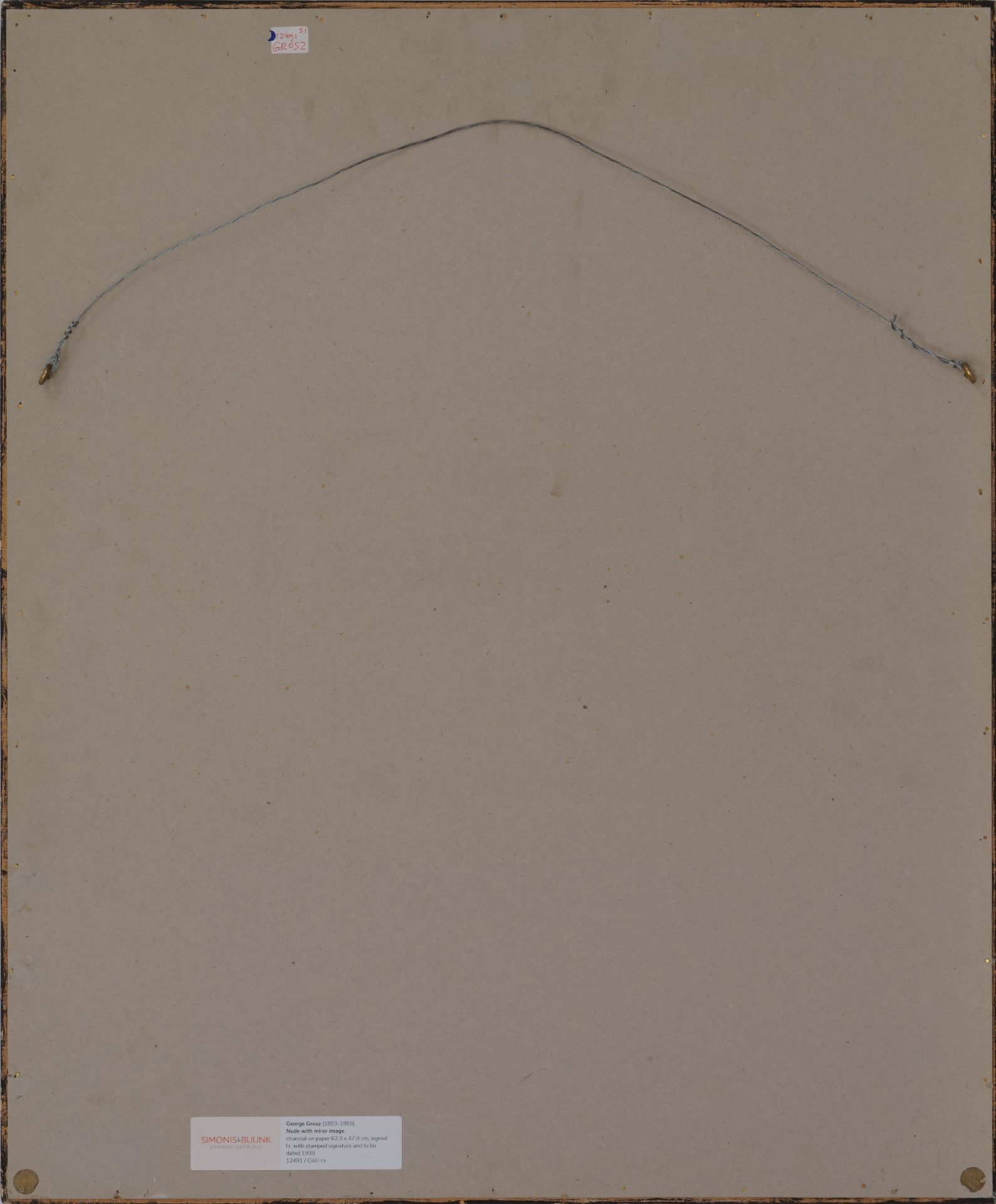 George Grosz geldt als een van de belangrijkste Duitse expressionisten. Zijn talent uitte zich op velerlei gebied. Hij tekende, schilderde, schreef, ontwierp kostuums en was een van de pioniers van de Dada-beweging in Duitsland. Het meest bekend zijn de tekeningen en schilderijen die hij maakte tussen 1914 en 1933. Daarin portretteerde hij een decadent na-oorlogs Berlijn, bevolkt door lichte vrouwen, invaliden en wanstaltige, overvoede kapitalisten. De vertekening van de figuren in dit werk had een sterk maatschappijkritische functie. Grosz was een overtuigd communist en hij hekelde hiermee de heersende burgerlijke moraal. Daarnaast maakte hij een aantal prachtige naaktportretten, onder andere van zijn vrouw, Eva Louise Peter, nadat zij in 1933 met hun kinderen naar Amerika waren geëmigreerd. Rond 1920 hield Grosz tijdelijk op om zijn werk op papier te signeren, om in plaats daarvan een datumstempel te gebruiken.