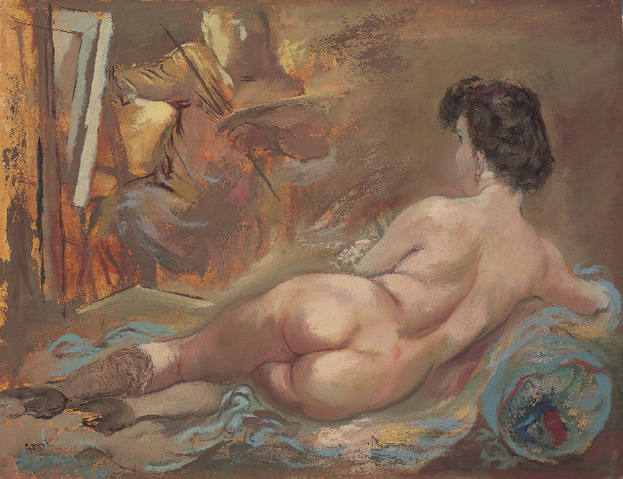 George Grosz kunstwerk • schilderij • voorheen te koop De schilder en zijn model, Eva Louise Peter