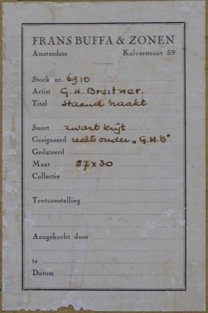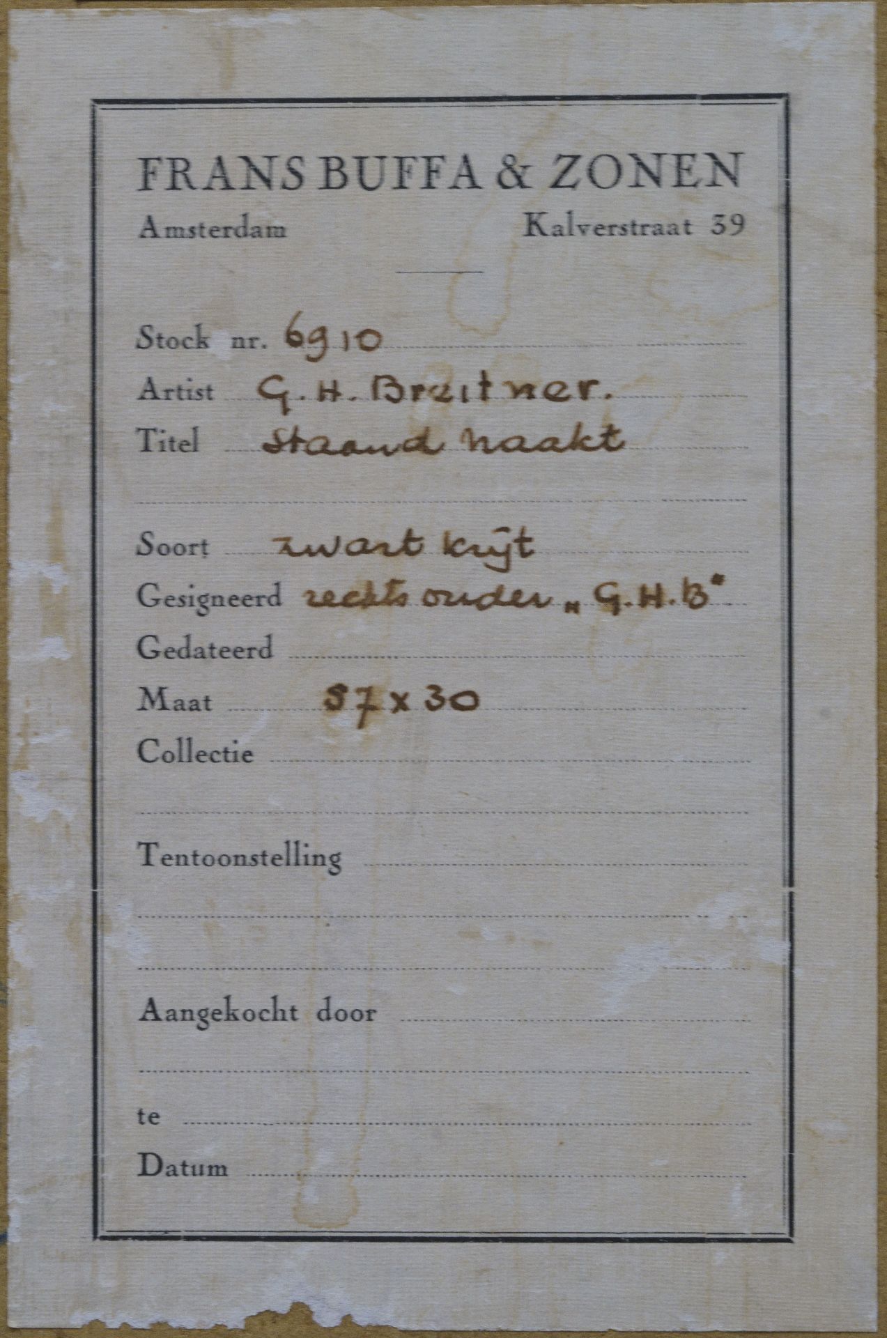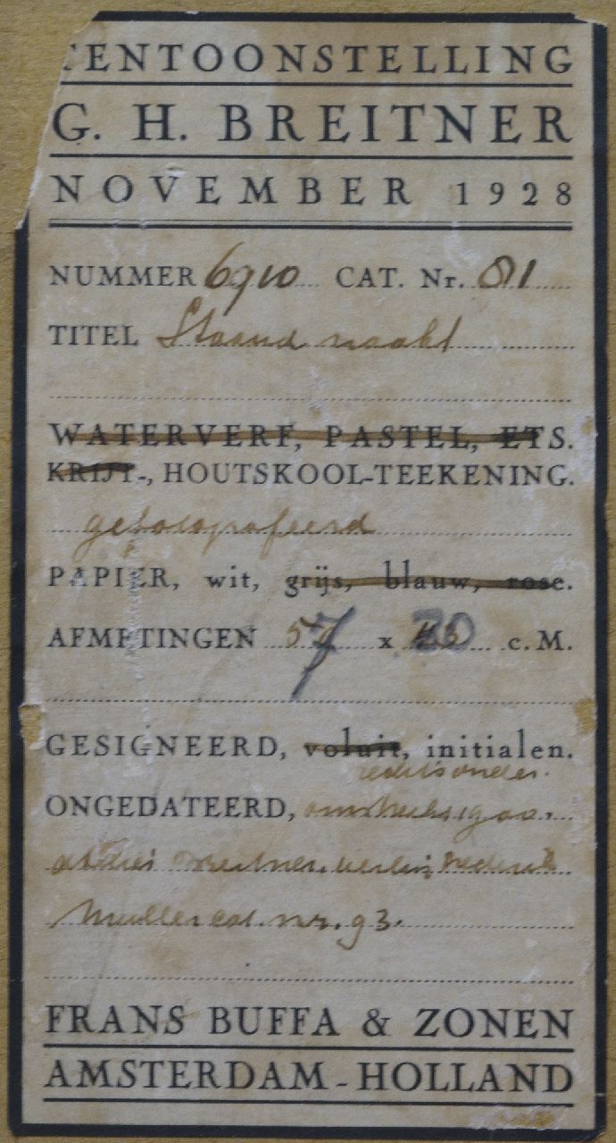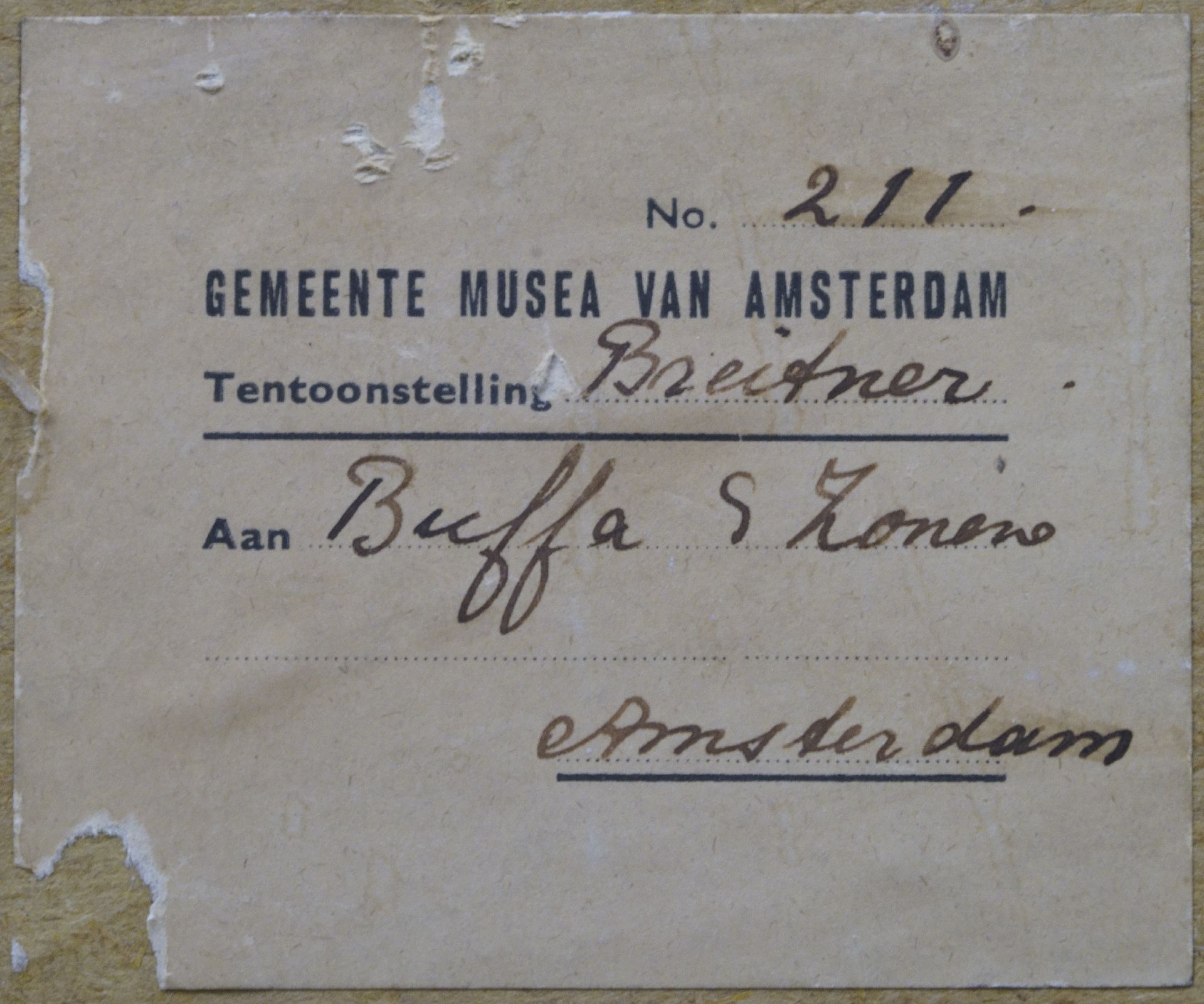 Tentoonstelling: Amsterdam, Frans Buffa & Zonen, 'Tentoonstelling G.H.Breitner', nov. 1928, cat.nr. 81; Amsterdam, Stedelijk Museum, 'Breitner en Amsterdam', 1947.
