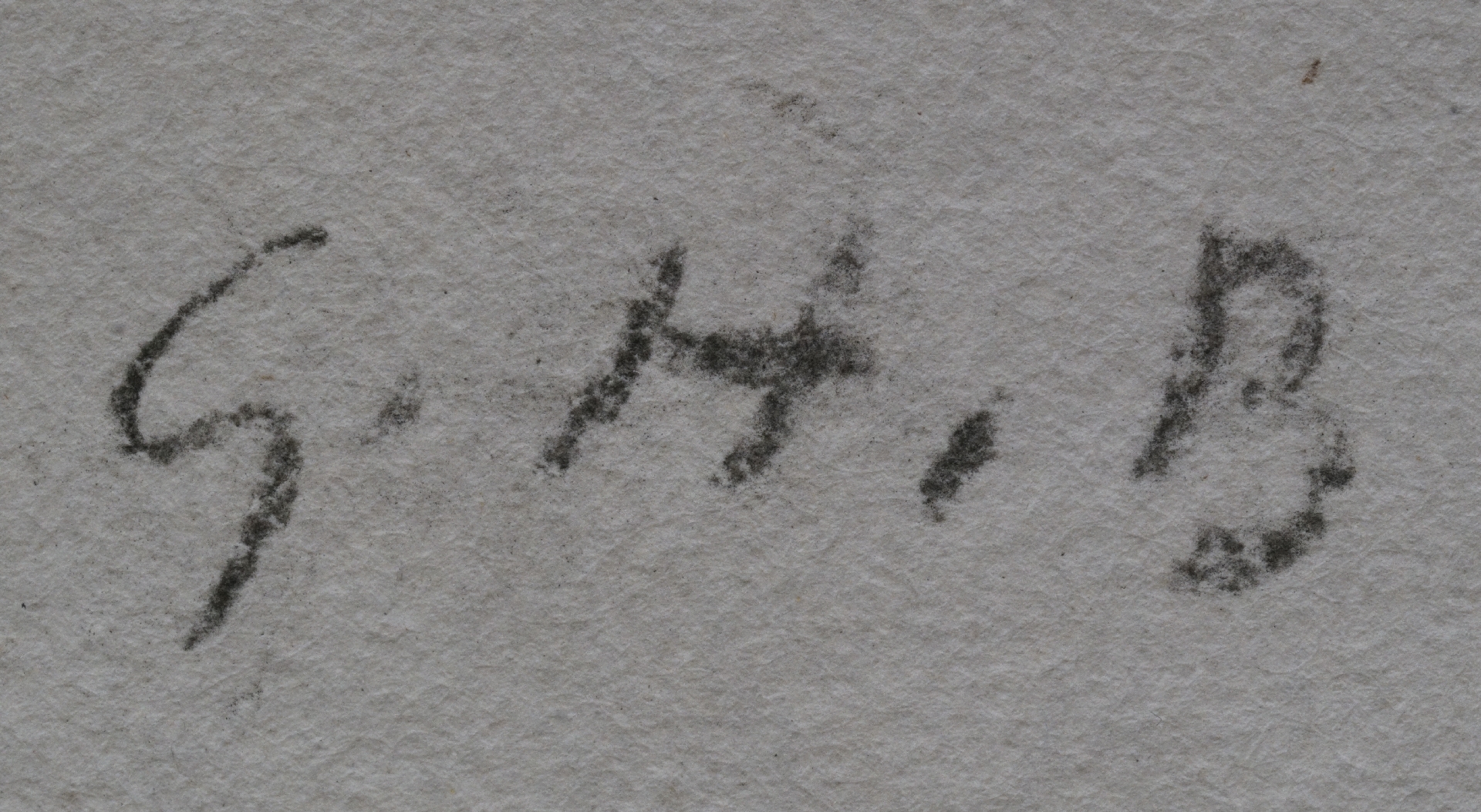 houtskool op papier 56,0 x 30,0 cm, gesigneerd rechtsonder met initialen en te dateren ca. 1900