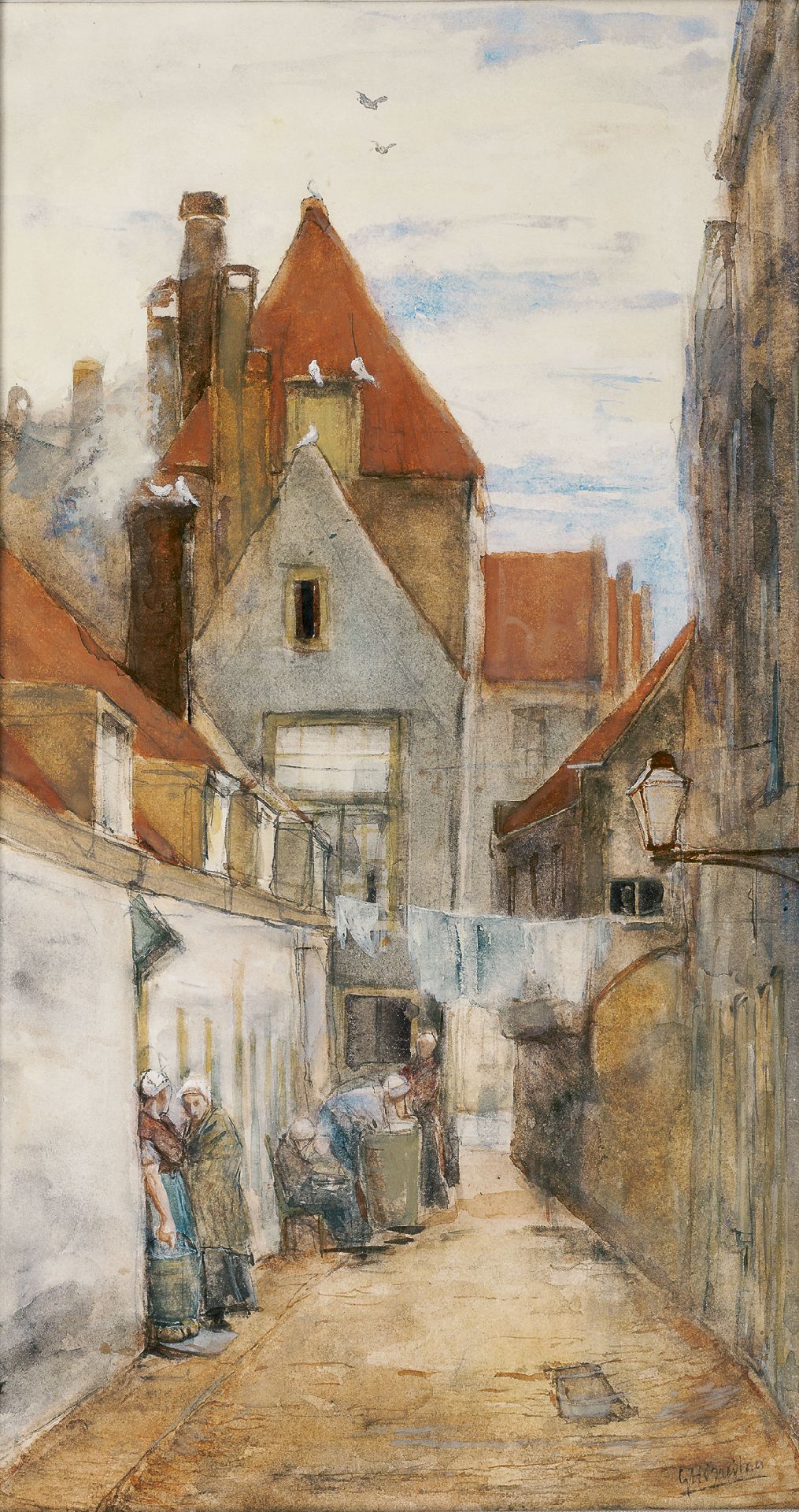 aquarel op papier 51,8 x 27,8 cm, gesigneerd rechtsonder en te dateren ca. 1880