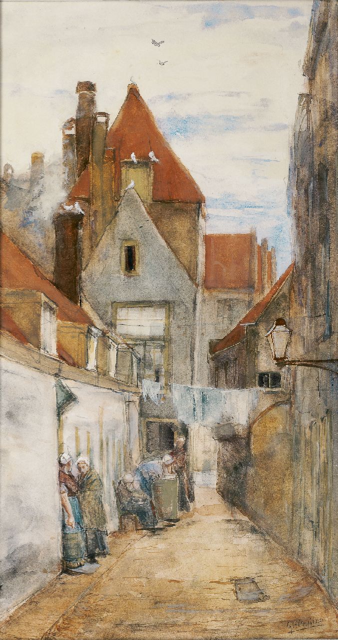 George Hendrik Breitner kunstwerk • aquarel • tekening • voorheen te koop Straatje in Rotterdam