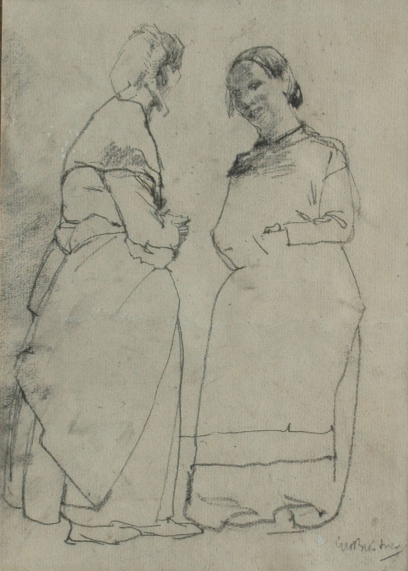 George Hendrik Breitner kunstwerk • aquarel • tekening • voorheen te koop Twee dienstbodes in gesprek