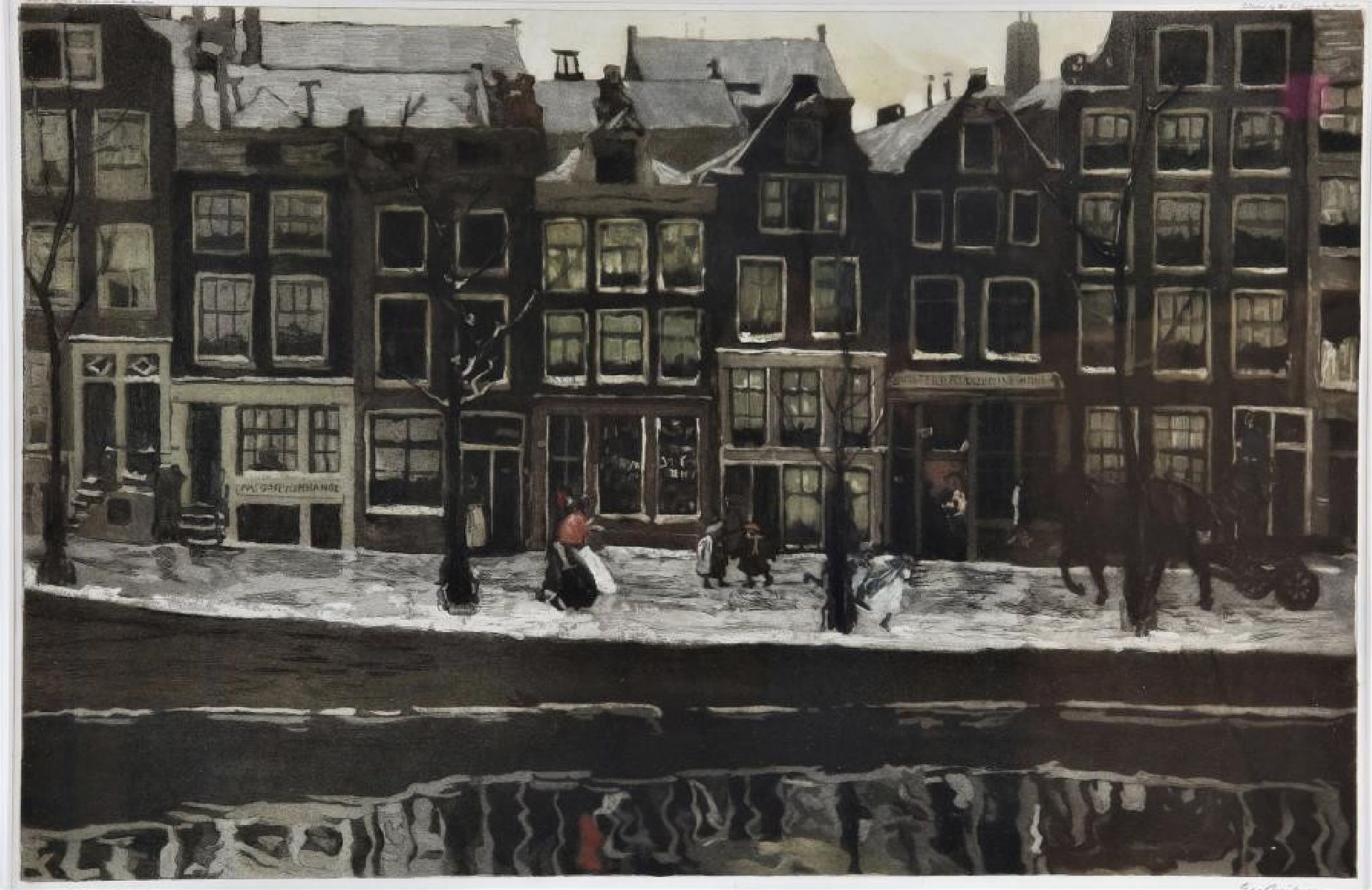 George Hendrik Breitner kunstwerk • grafiek • voorheen te koop Een Amsterdamse gracht in de sneeuw