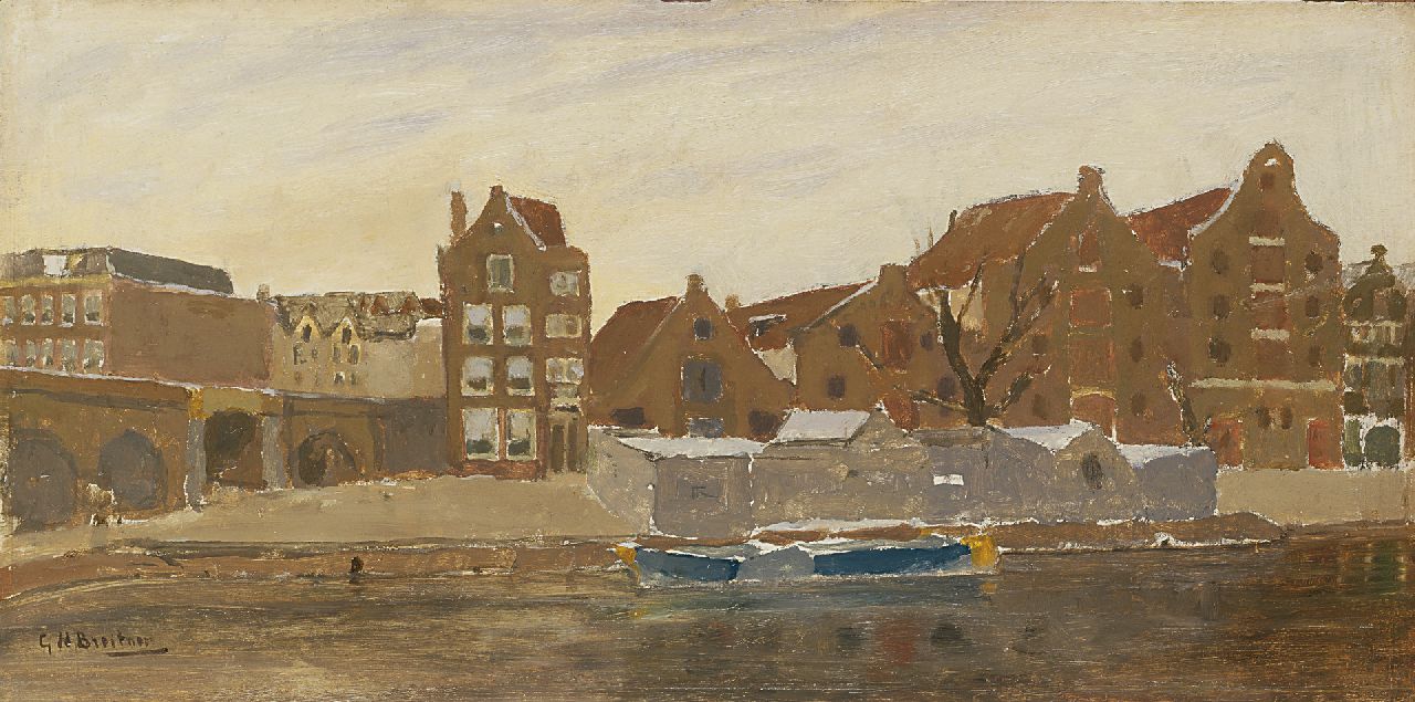 George Hendrik Breitner kunstwerk • schilderij • voorheen te koop De Teertuinen op het Bickerseiland, Amsterdam (uitzicht vanuit het atelier van de schilder)