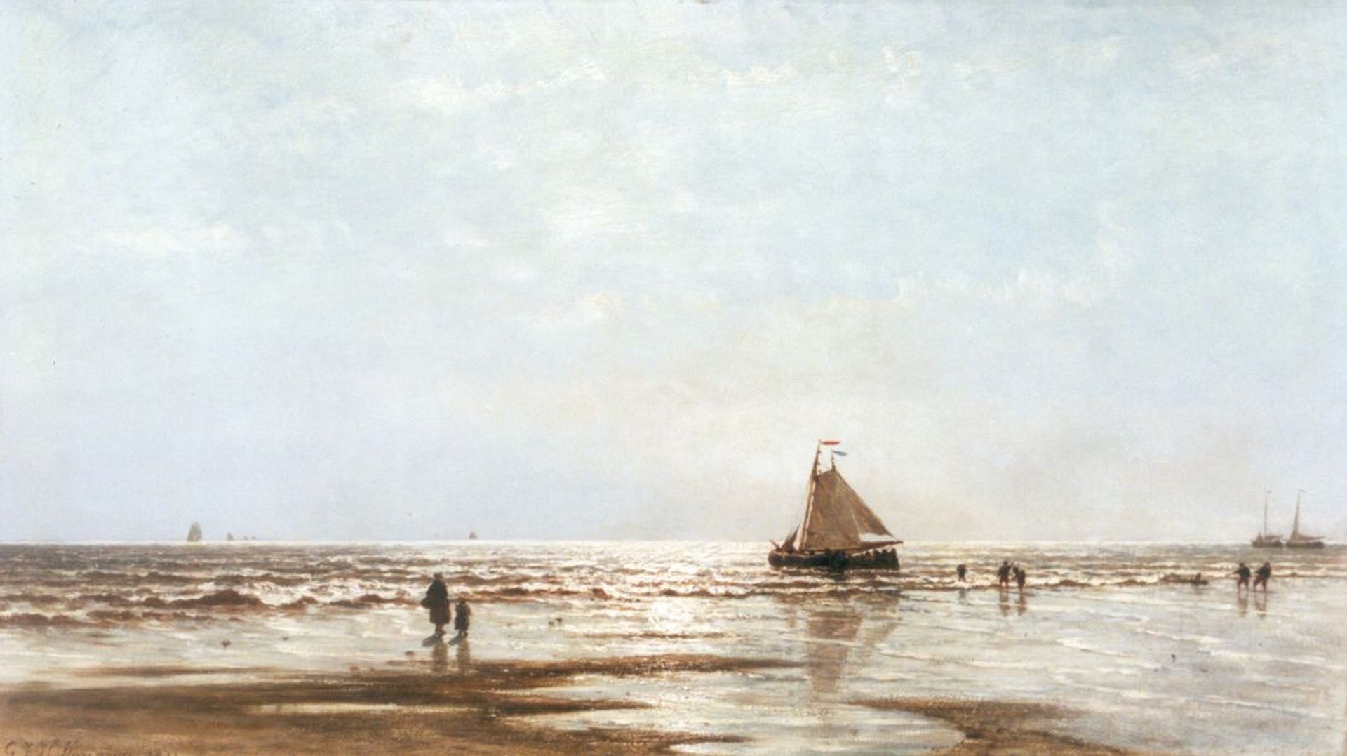 olieverf op paneel 50,3 x 89,0 cm, gesigneerd linksonder en gedateerd 1873