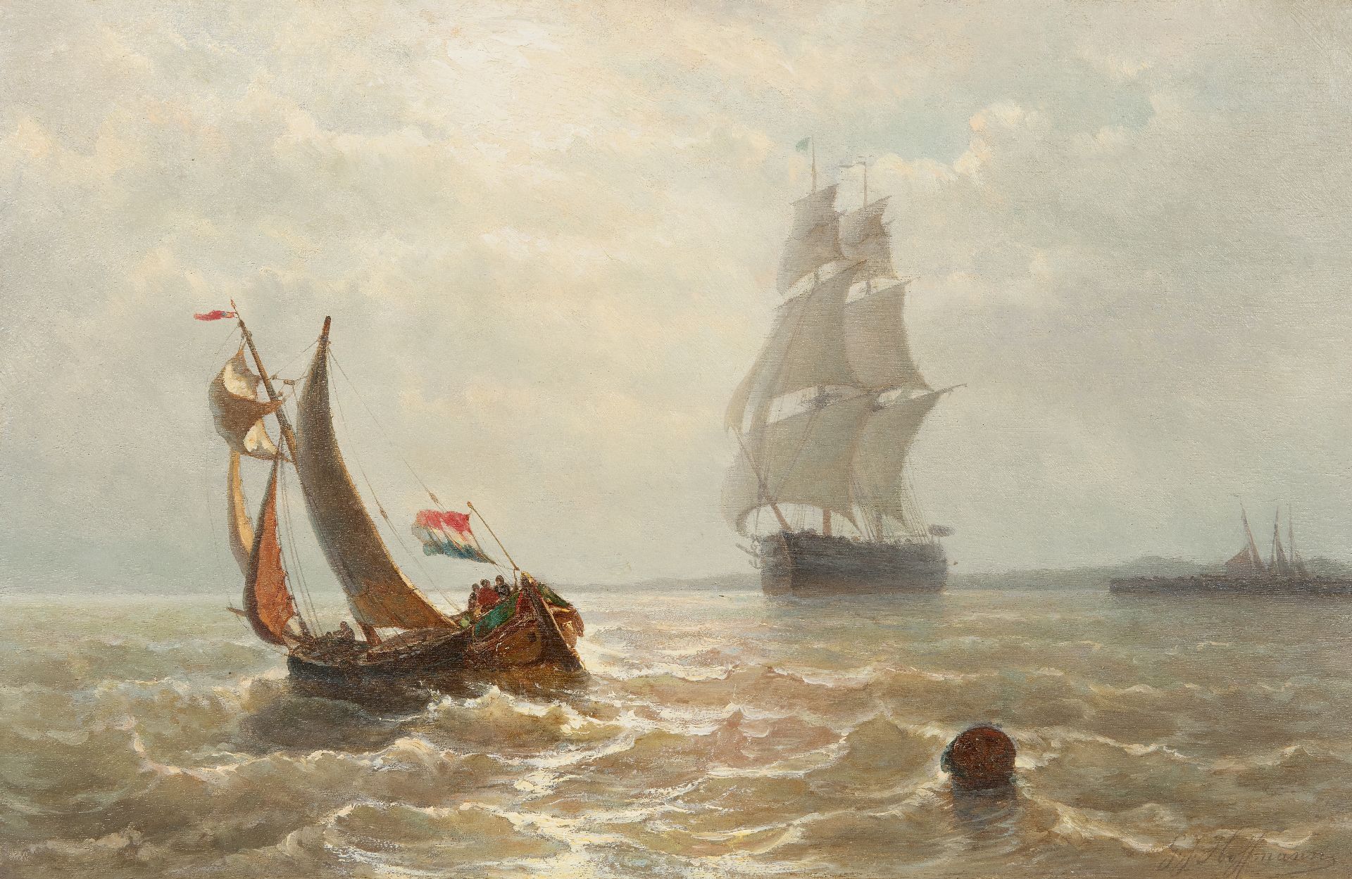De schilder Georges Johannes Hoffmann woonde en werkte vrijwel zijn hele leven in Den Haag. Daar leerde hij het schildersvak van de romantische marineschilder Louis Meijer, wat resulteerde in een oeuvre dat grotendeels bestaat uit zeegezichten, havens, stranden met schepen en rivieren. In de jaren '70 deelde Hoffmann een atelier aan de juffrouw Idastraat met Willem Maris, Mauve, Blommers en Elchanon Verveer. In die tijd ondergaat hij ook invloed van de Haagse School.