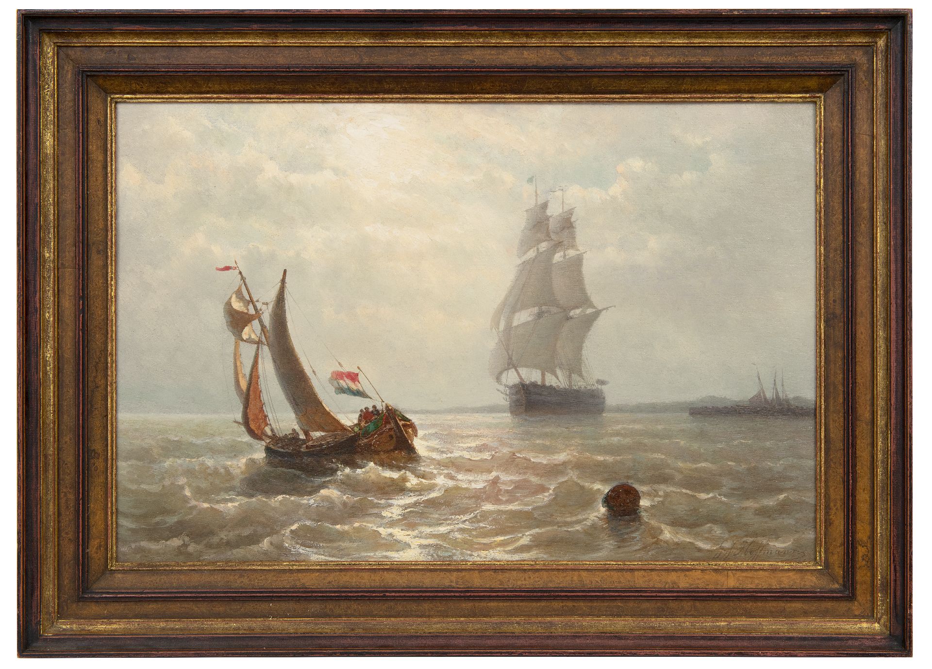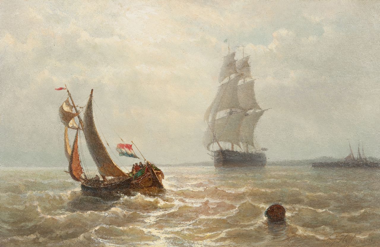 George Johannes Hoffmann kunstwerk • schilderij • te koop Uitvarende boeier in een stevige bries