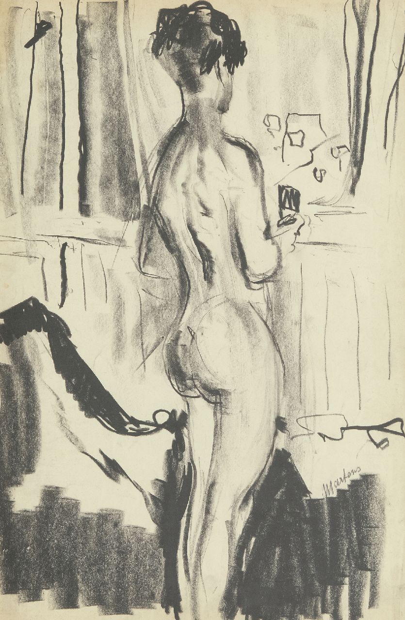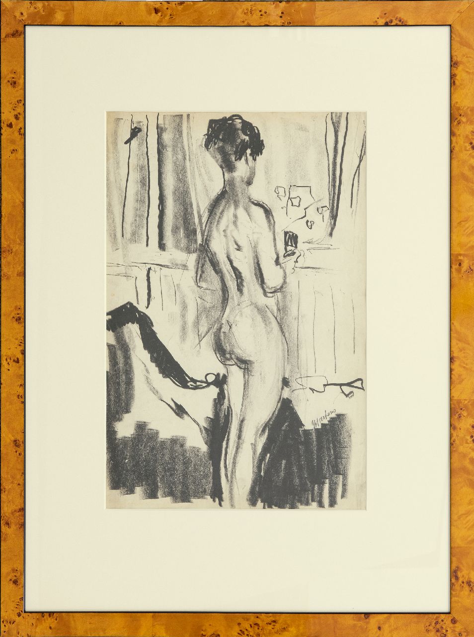 George Martens kunstwerk • aquarel • tekening • voorheen te koop Naakt, op de rug gezien, in atelier