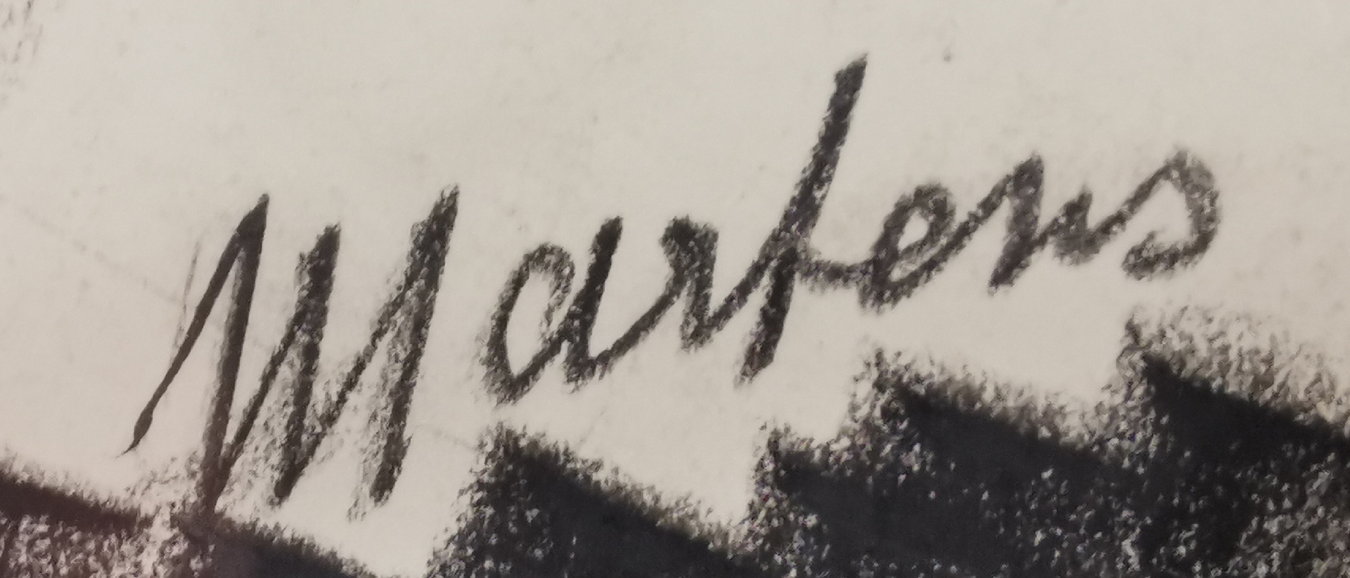 zwart krijt op papier 48,0 x 32,5 cm, gesigneerd rechts van het midden en te dateren ca. 1931