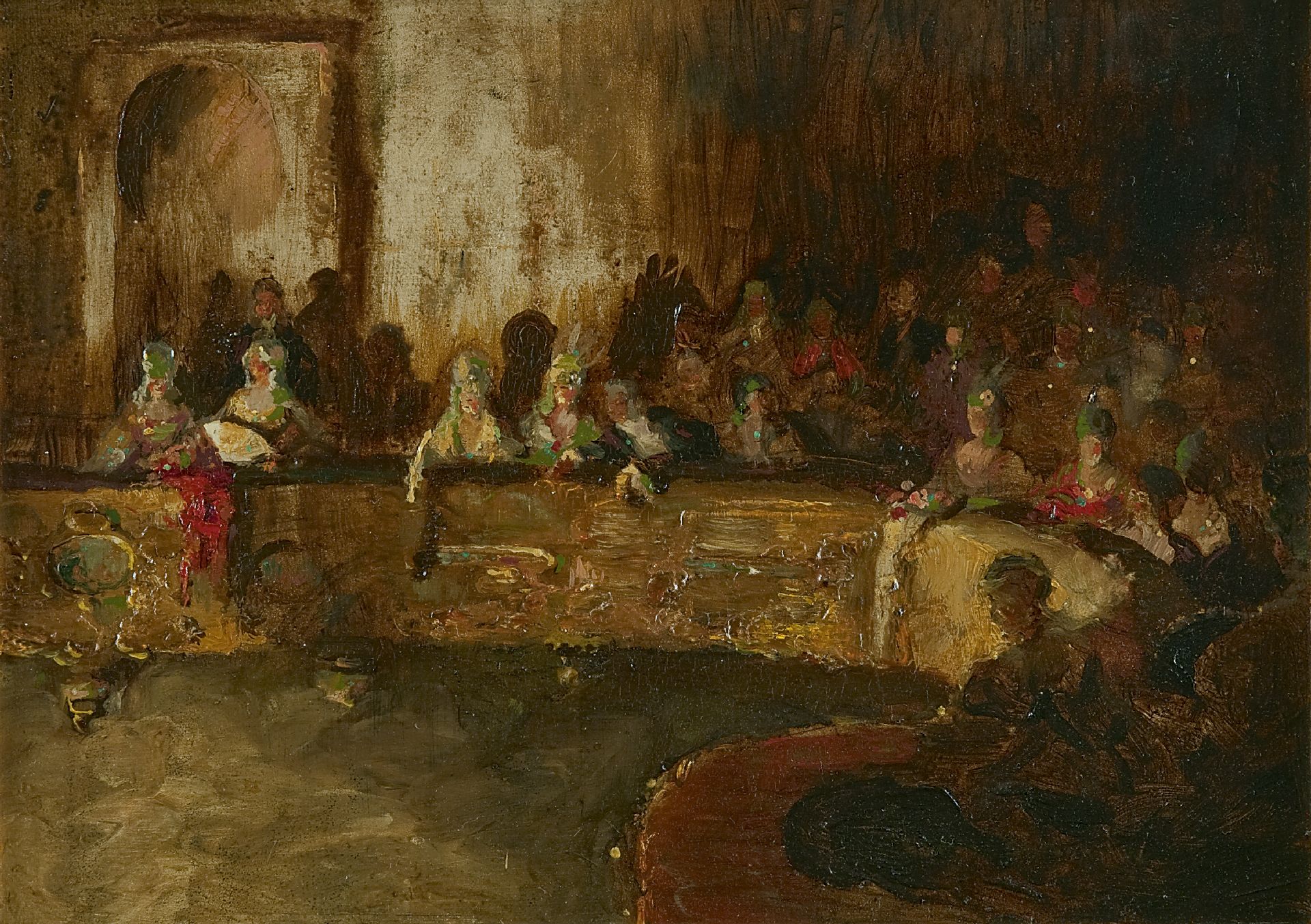 George Sheringham kunstwerk • schilderij • voorheen te koop De toehoorders