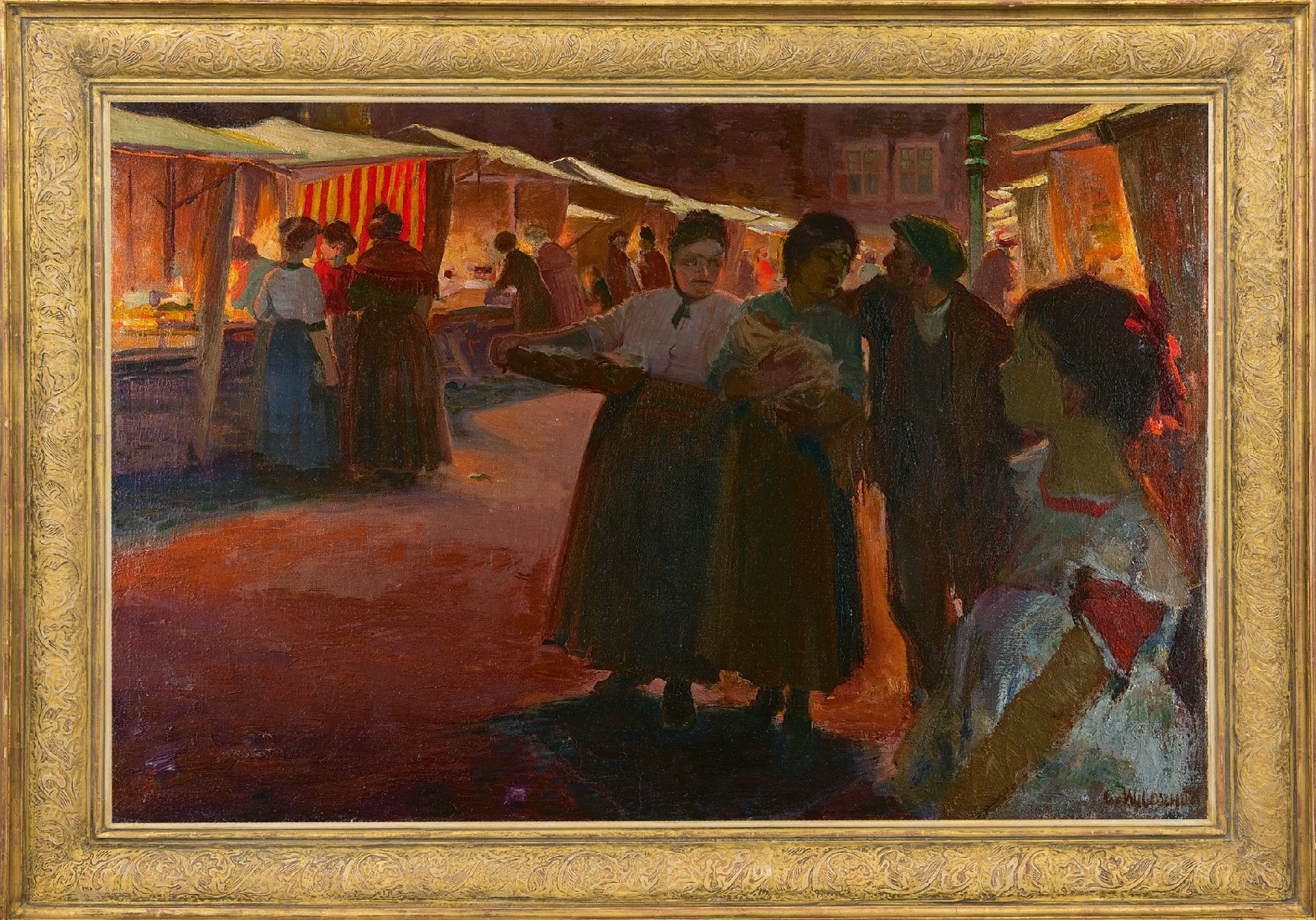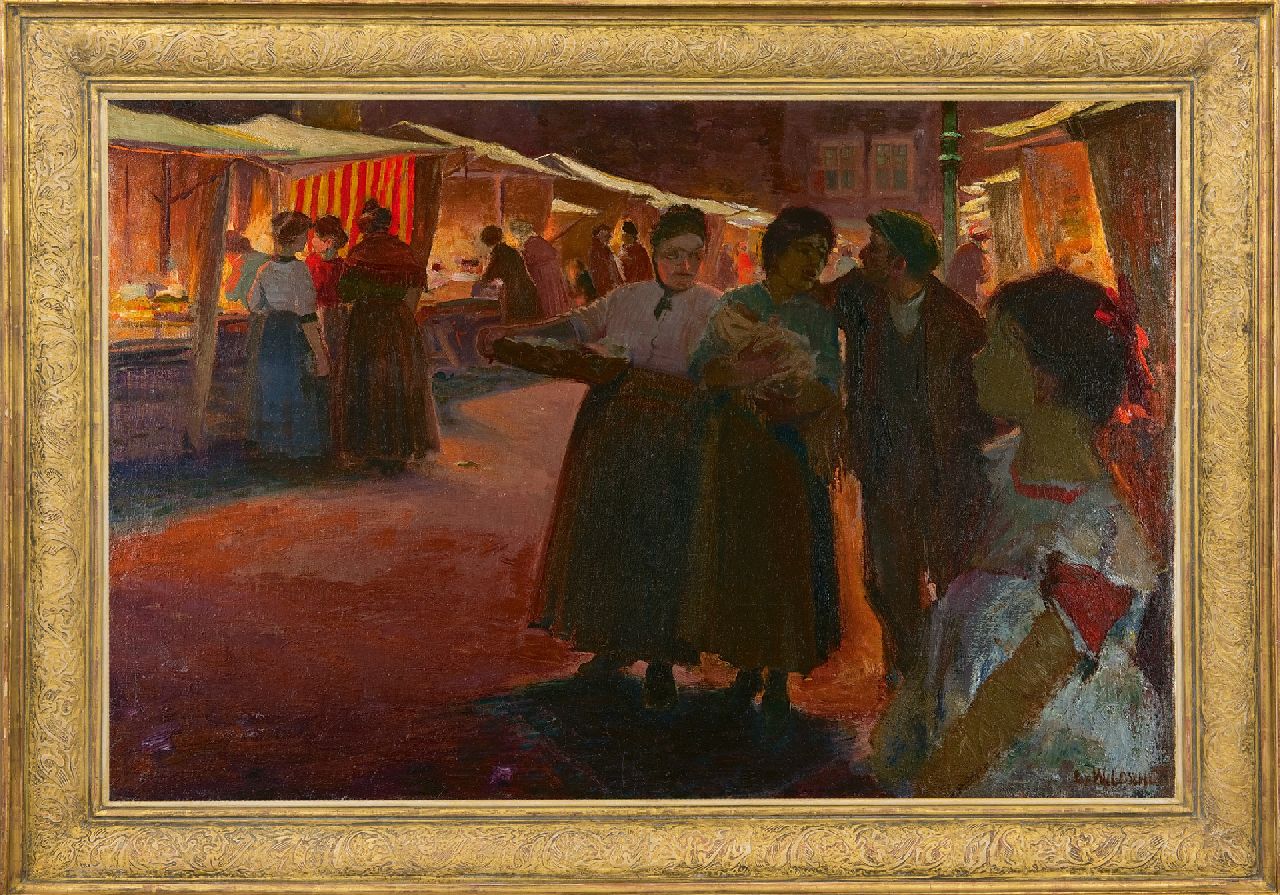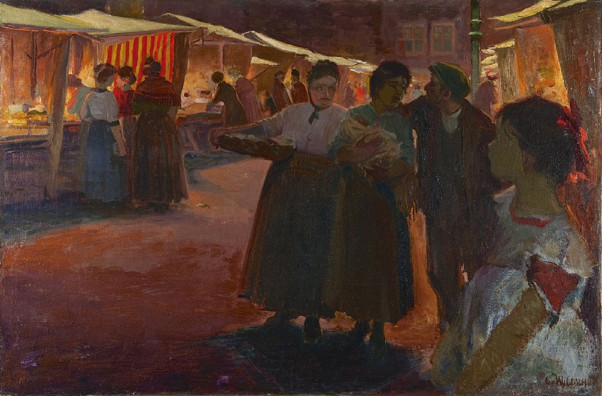 George Wildschut kunstwerk • schilderij • te koop Avondmarkt in de Joodse buurt, Amsterdam