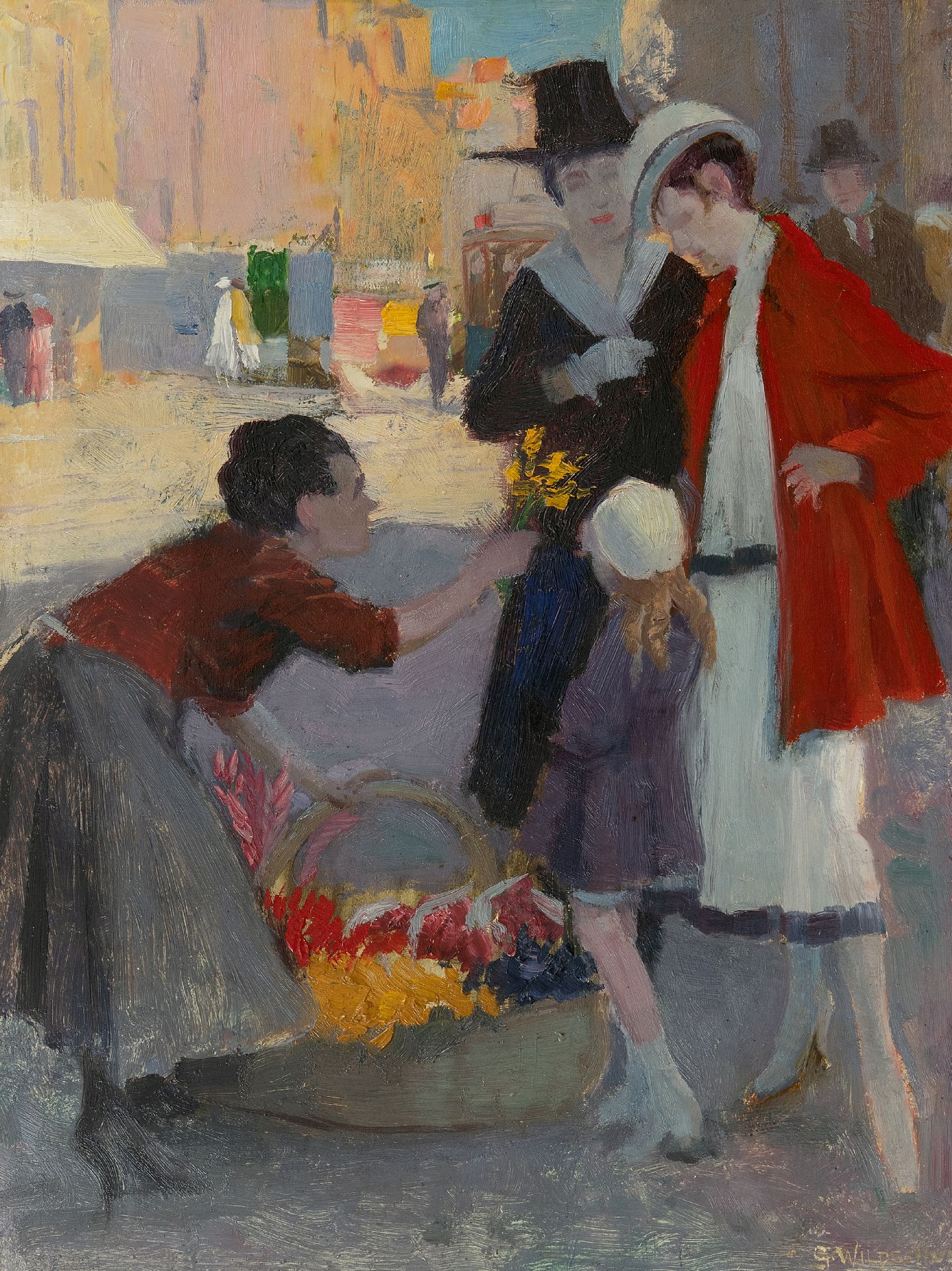 George Wildschut kunstwerk • schilderij • voorheen te koop Bij de bloemenverkoopster