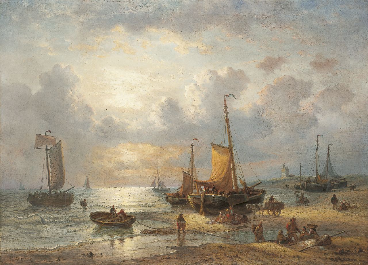 George Willem Opdenhoff kunstwerk • schilderij • te koop Het uitladen van de vangst