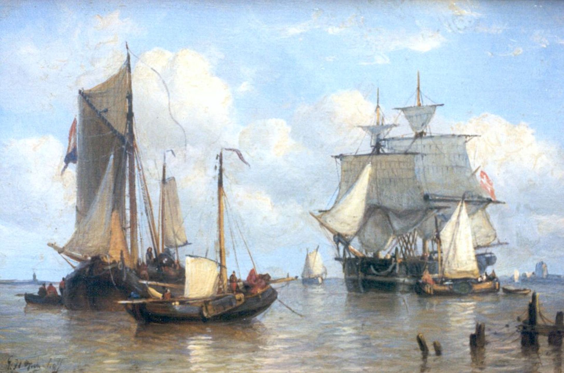 George Willem Opdenhoff kunstwerk • schilderij • voorheen te koop Schepen voor anker