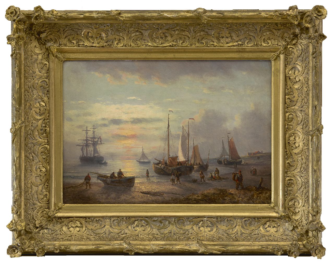George Willem Opdenhoff | Het uitladen van de vangst, olieverf op doek, 70,7 x 97,7 cm, gesigneerd l.o.