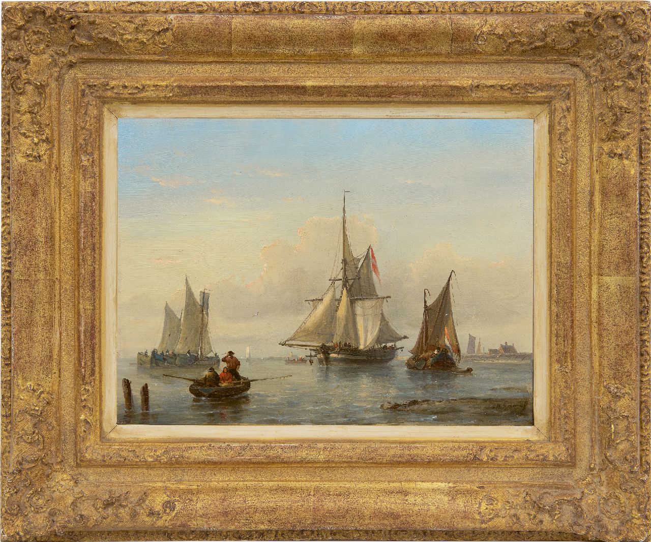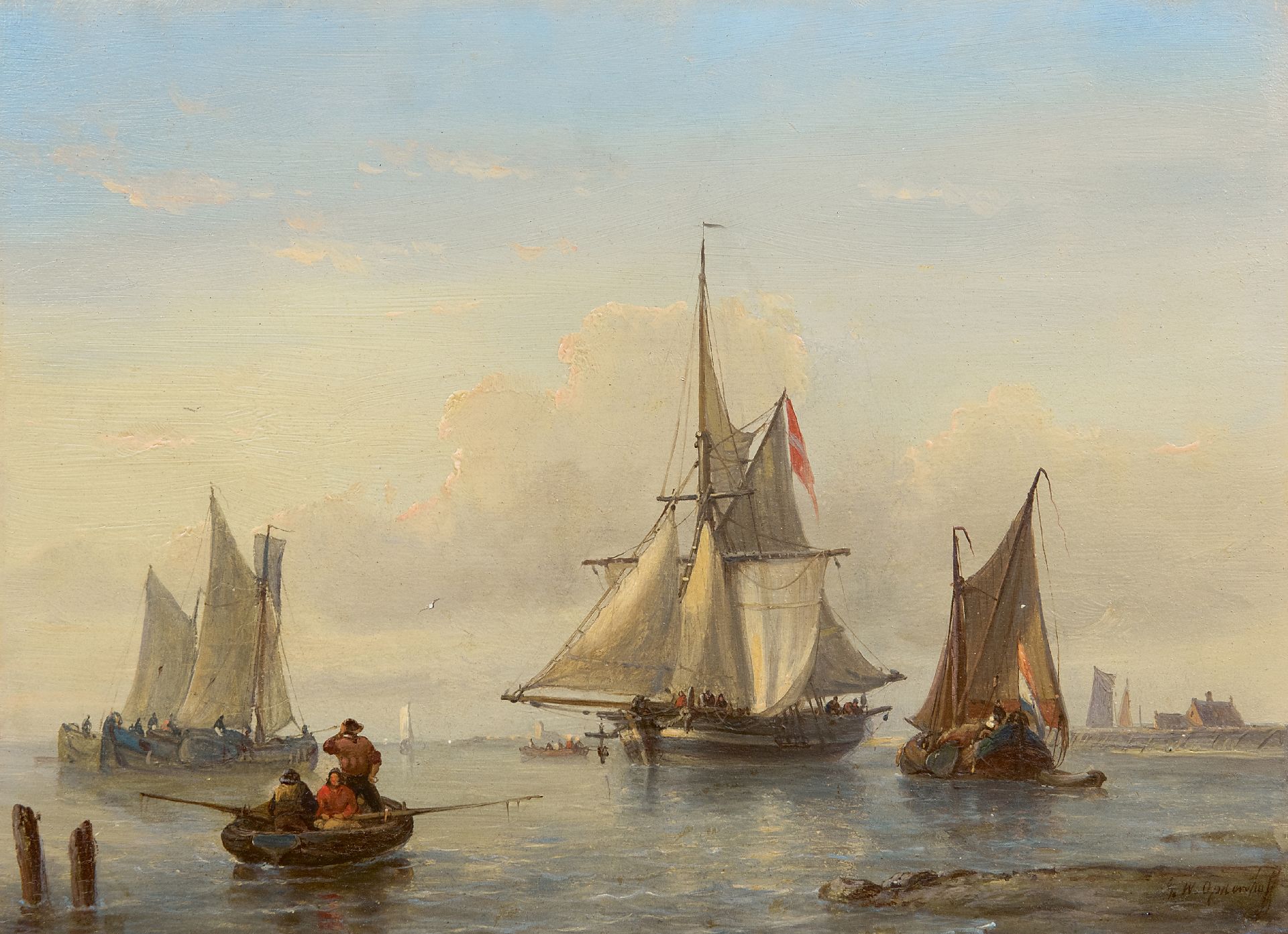 George Willem Opdenhoff kunstwerk • schilderij • voorheen te koop Zeilschepen op een windstille dag voor de kust