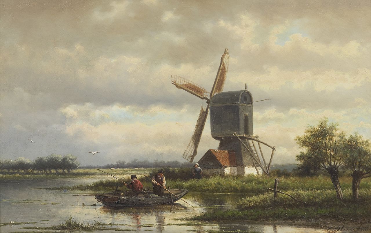 Georgius Heerebaart kunstwerk • schilderij • voorheen te koop Boten op een rivier