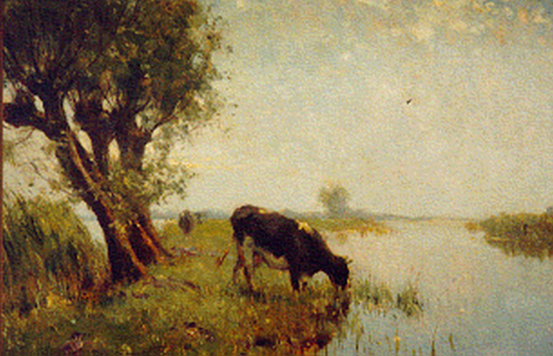 Gerard Altmann kunstwerk • schilderij • voorheen te koop Polderplas met wilg en koe