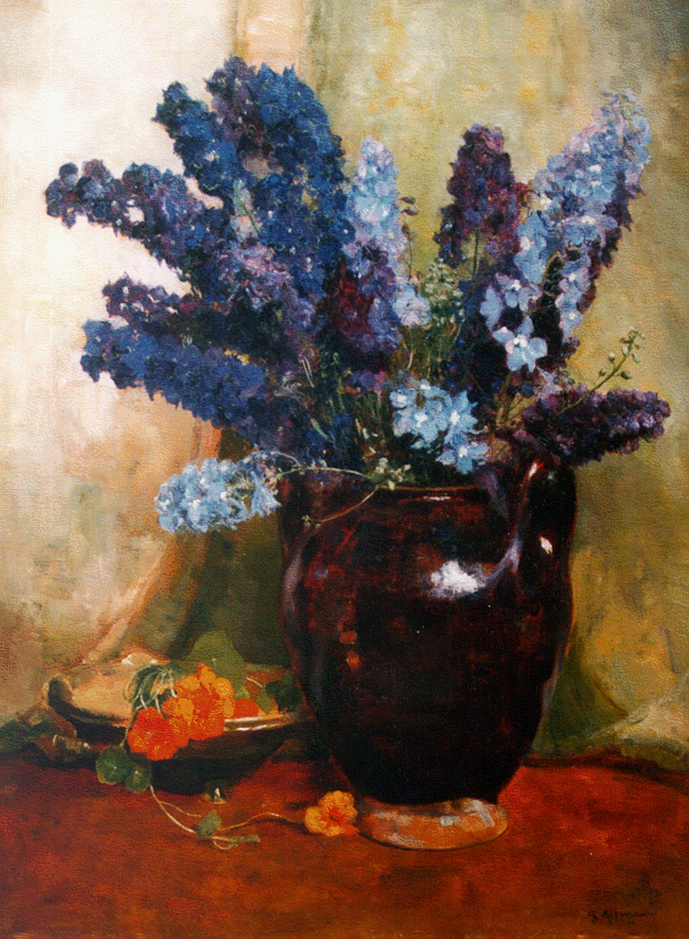 Gerard Altmann kunstwerk • schilderij • voorheen te koop Vaas met delphiniums