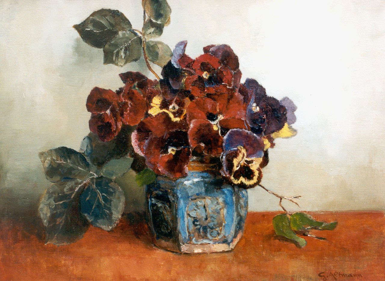 Gerard Altmann kunstwerk • schilderij • voorheen te koop Viooltjes in gemberpot