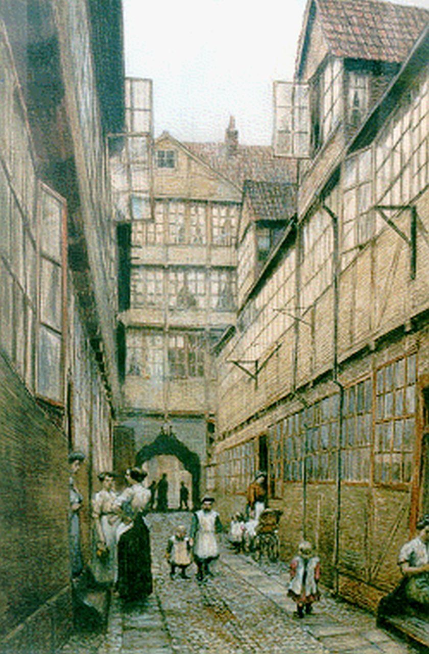 Gerard Johan Staller kunstwerk • aquarel • tekening • voorheen te koop Fingergang Hof in Hamburg