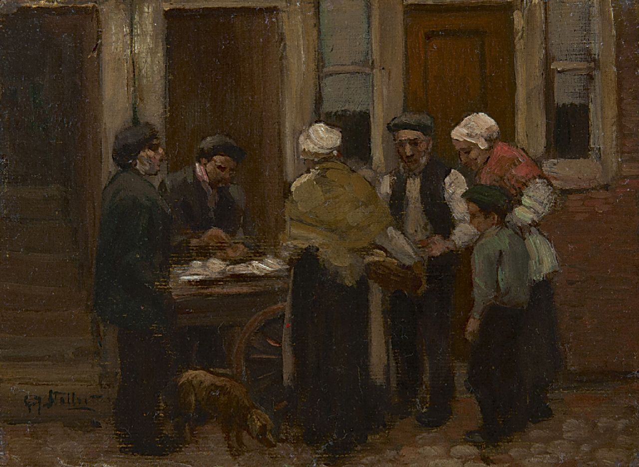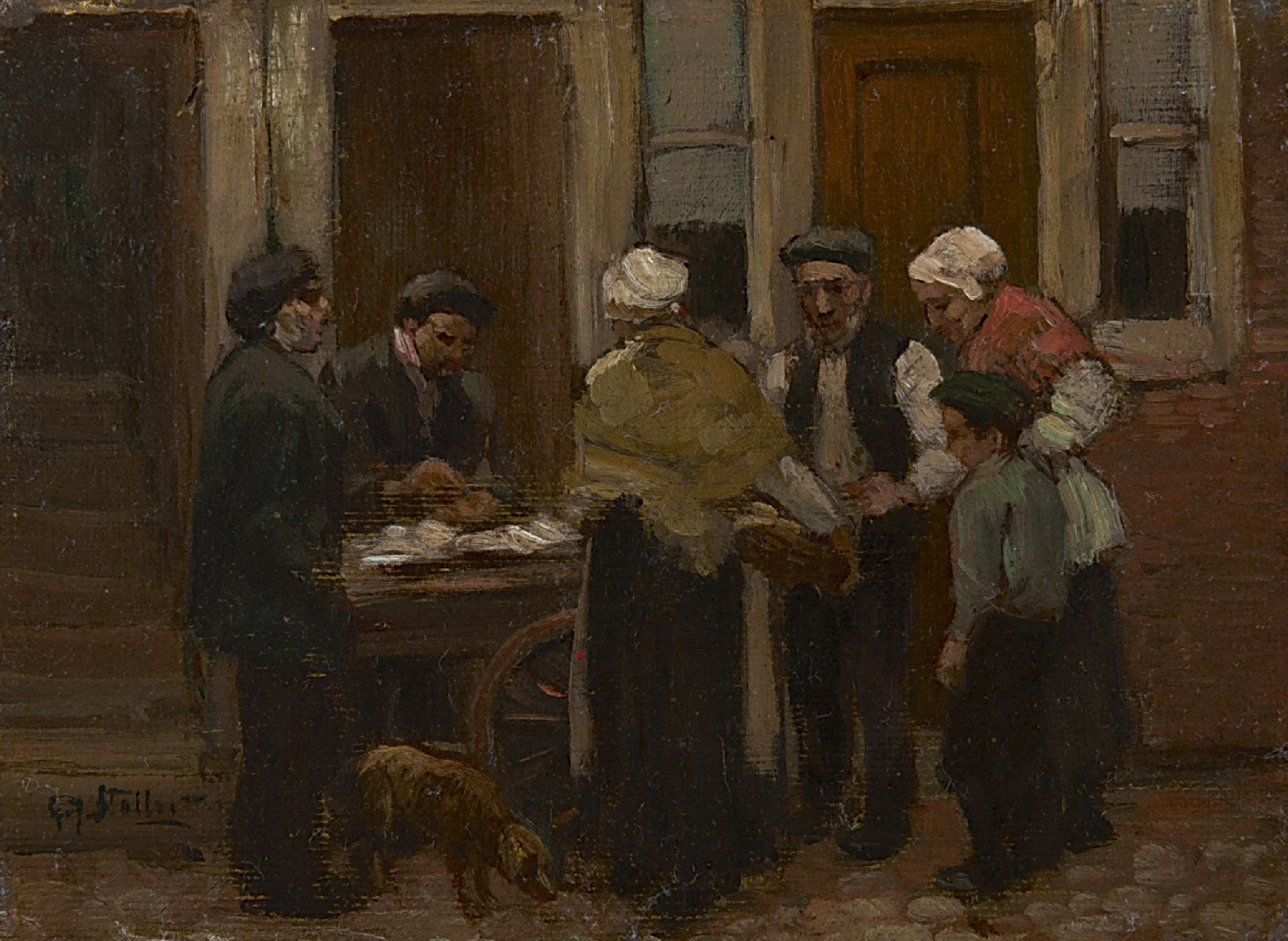 Gerard Johan Staller kunstwerk • schilderij • voorheen te koop Bij de haringkar