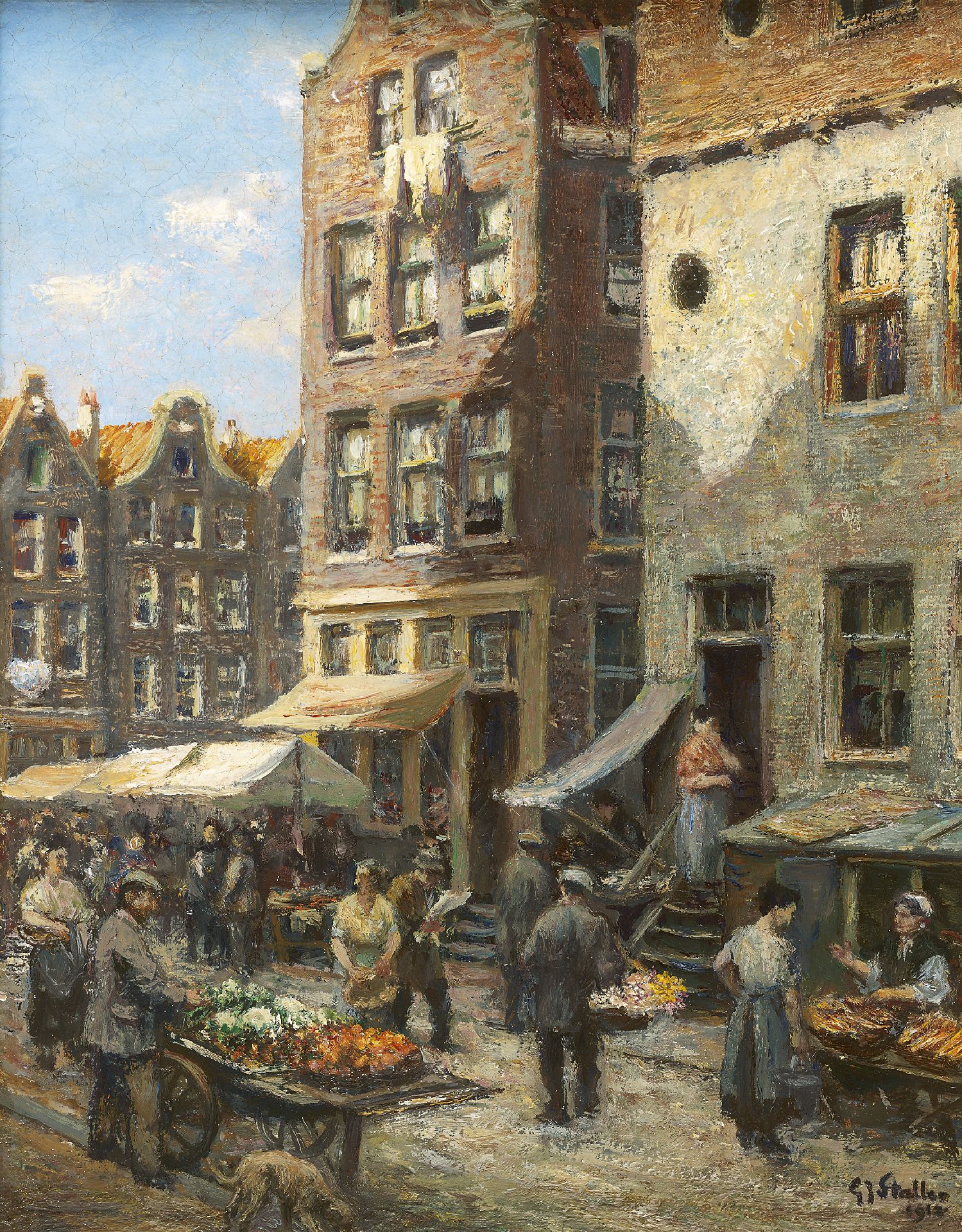 Gerard Johan Staller kunstwerk • schilderij • voorheen te koop Markt in de Amsterdamse joodse buurt