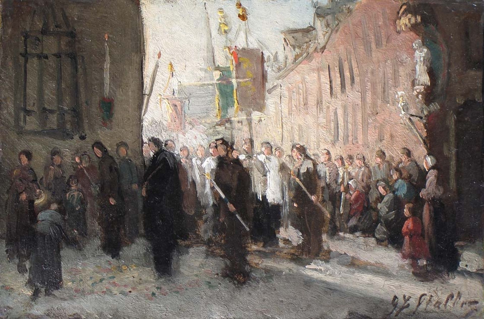 Gerard Johan Staller kunstwerk • schilderij • voorheen te koop Processie met vaandeldragers