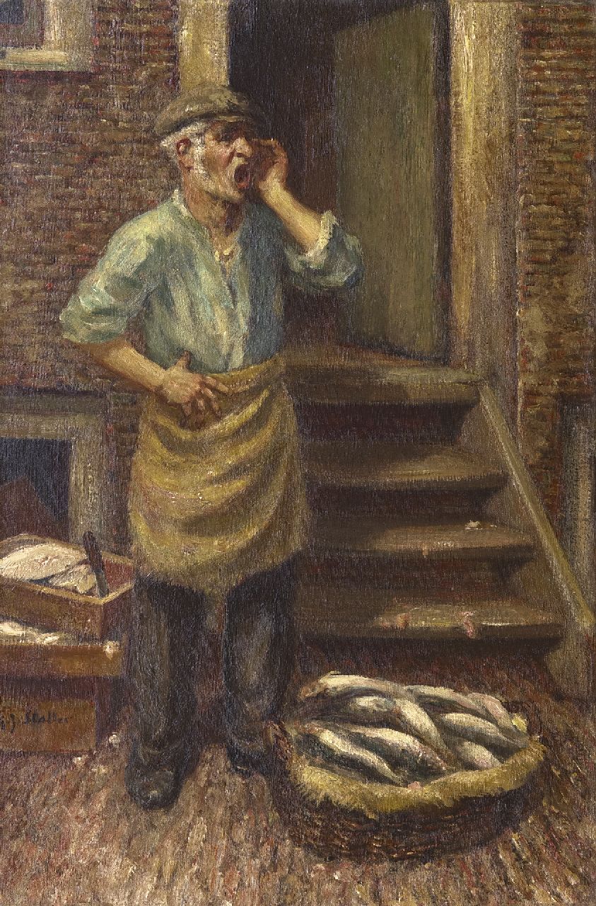 Gerard Johan Staller kunstwerk • schilderij • voorheen te koop Visverkoper, Amsterdam